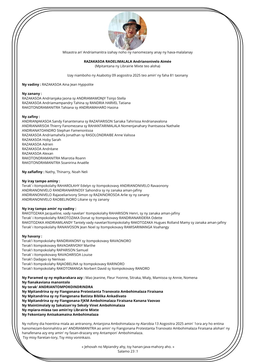RANAIVO Rachel Solonirina (Loholona) Vady navelan’Itpklahy RABARISOA Michel