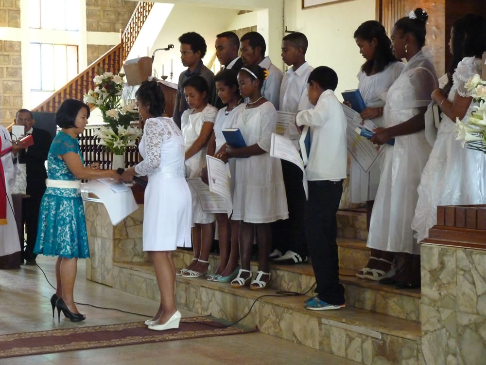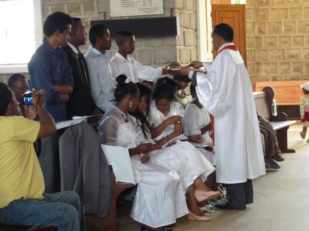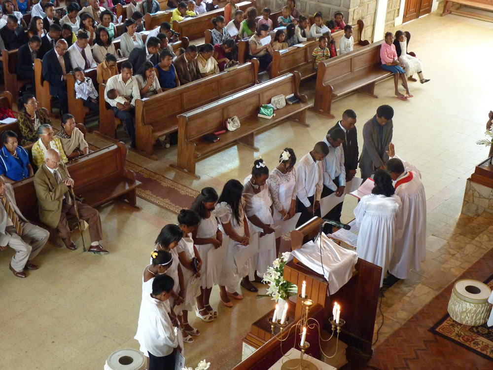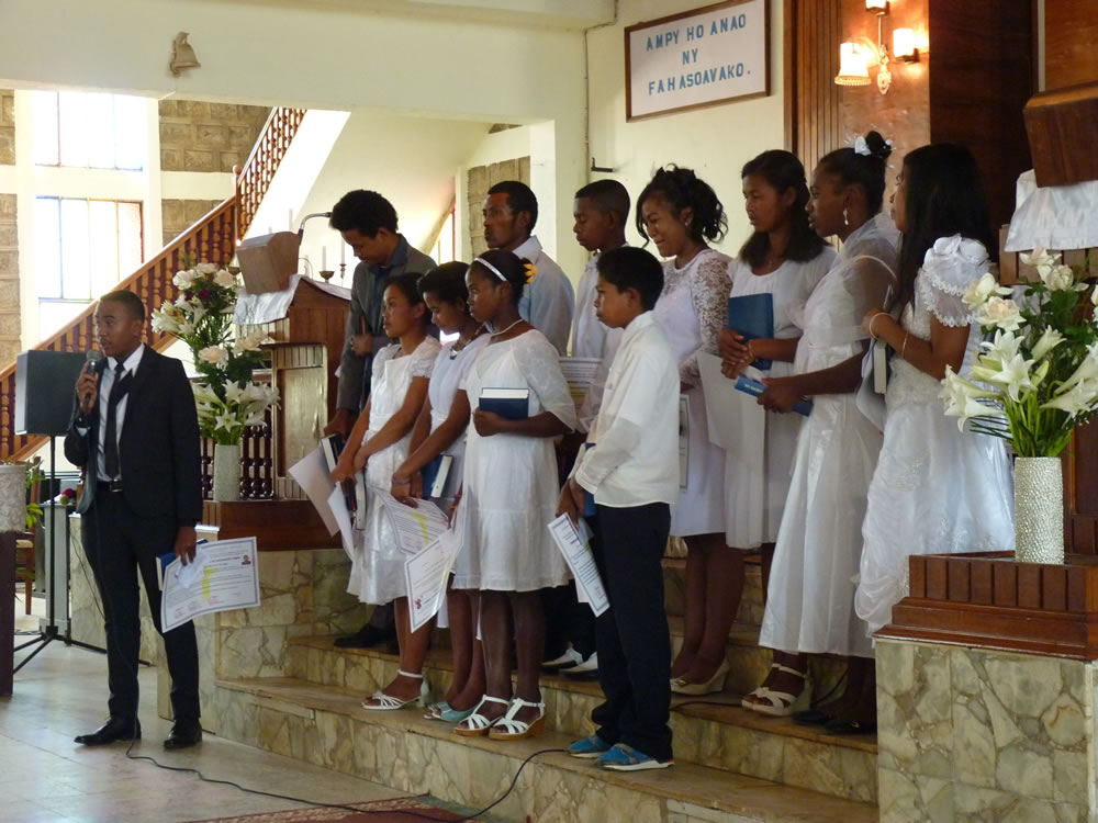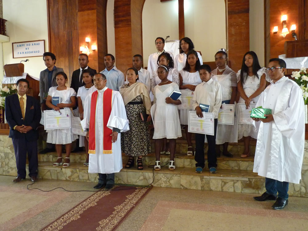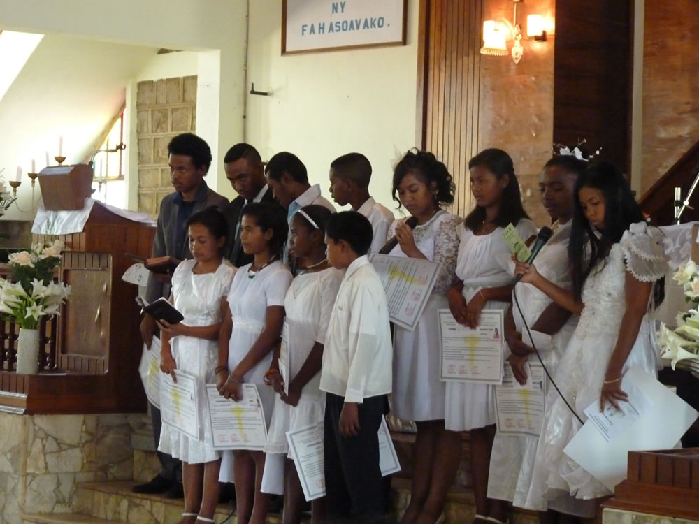 Mat 28:19-20 koa mandehana ianareo, dia ataovy mpianatra ny firenena rehetra, manao batisa azy ho amin'ny anaran'ny Ray sy ny Zanaka ary ny Fanahy Masina sady mampianatra azy hitandrina izay rehetra nandidiako anareo ; ary, indro, Izaho momba anareo mandrakariva ambara-pahatongan'ny fahataperan'izao tontolo izao.