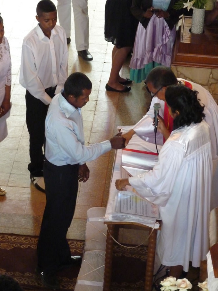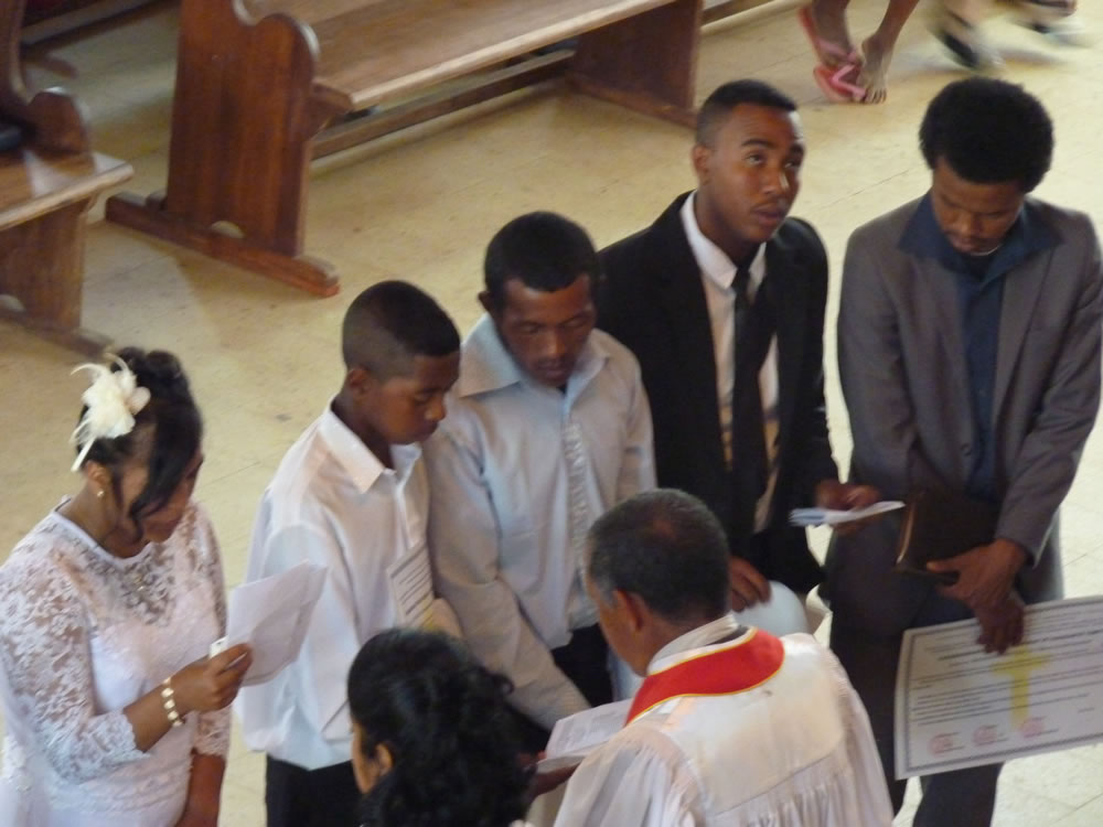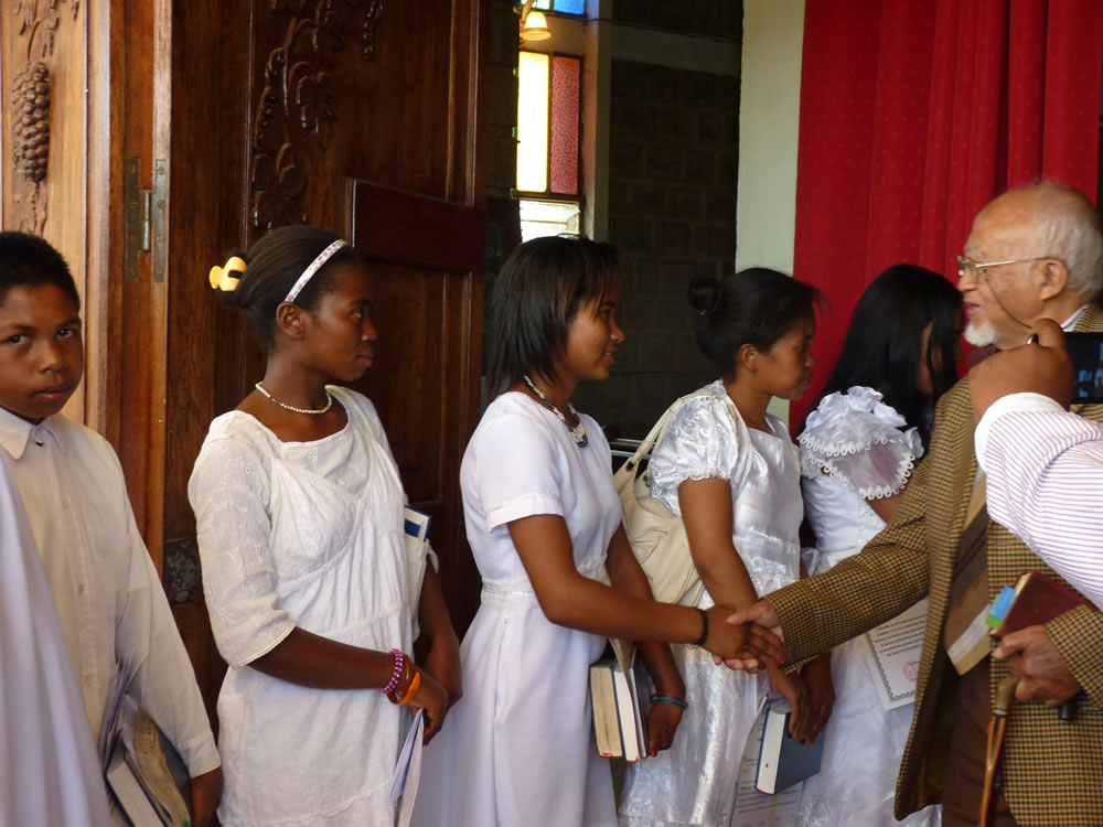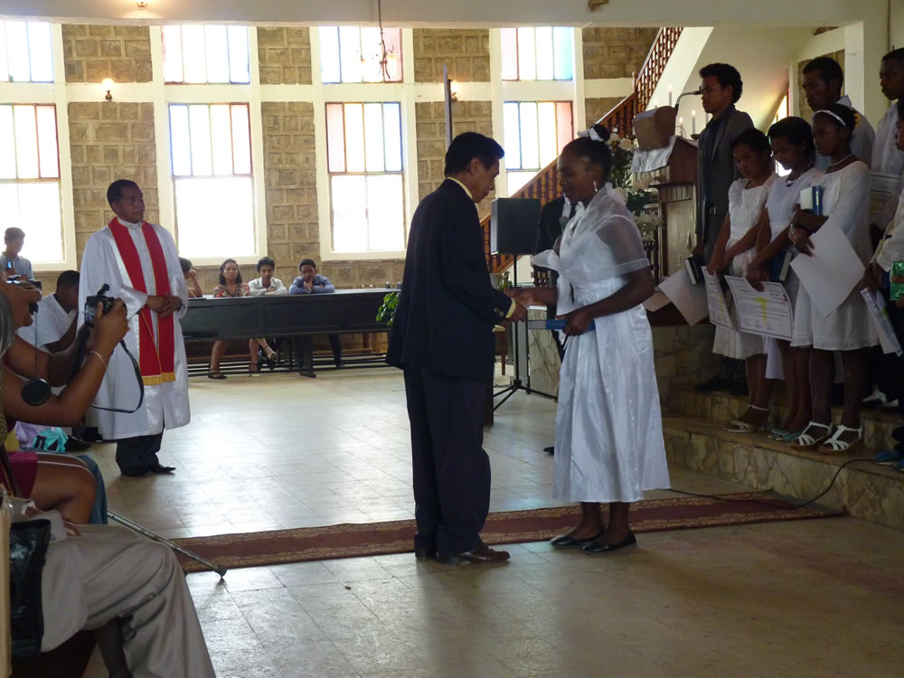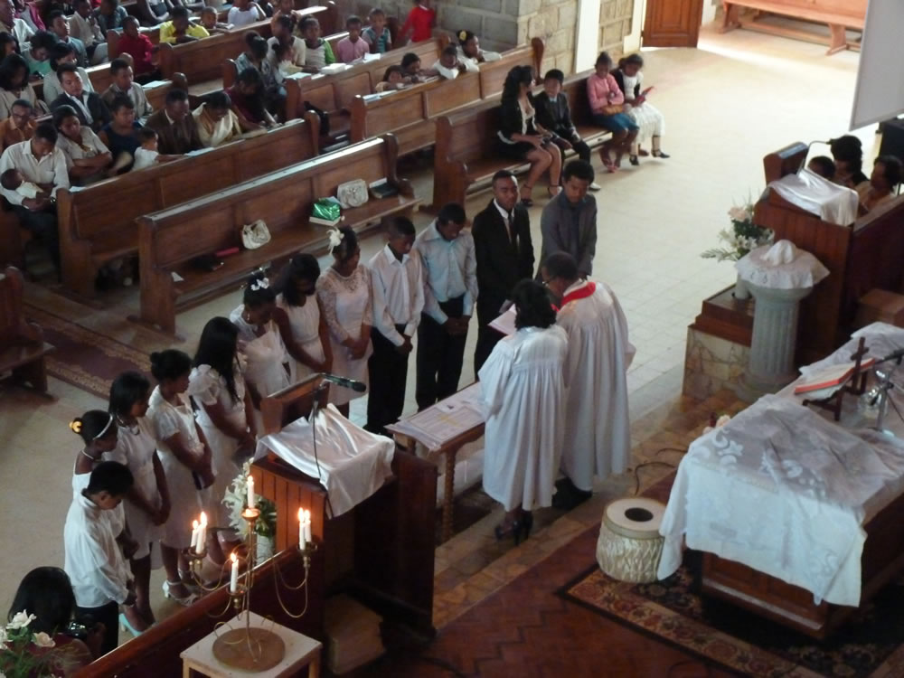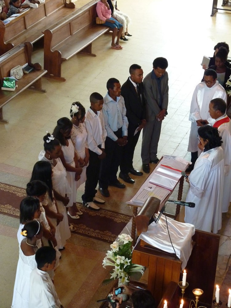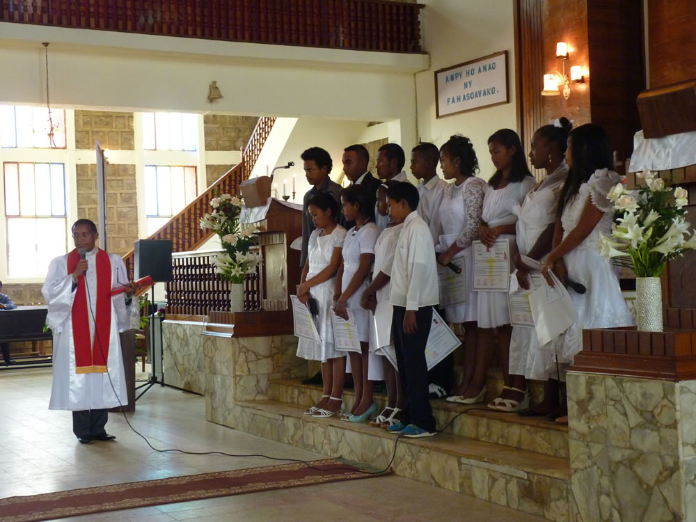Mat 28:19-20 koa mandehana ianareo, dia ataovy mpianatra ny firenena rehetra, manao batisa azy ho amin'ny anaran'ny Ray sy ny Zanaka ary ny Fanahy Masina sady mampianatra azy hitandrina izay rehetra nandidiako anareo ; ary, indro, Izaho momba anareo mandrakariva ambara-pahatongan'ny fahataperan'izao tontolo izao.