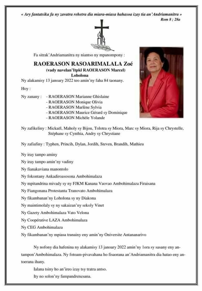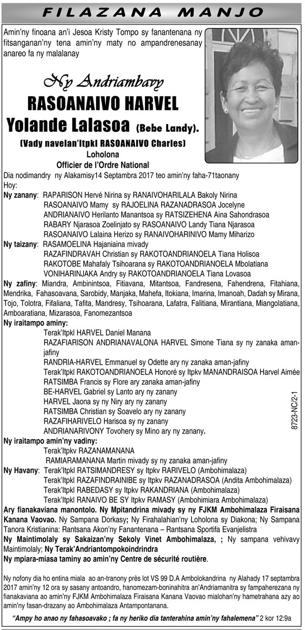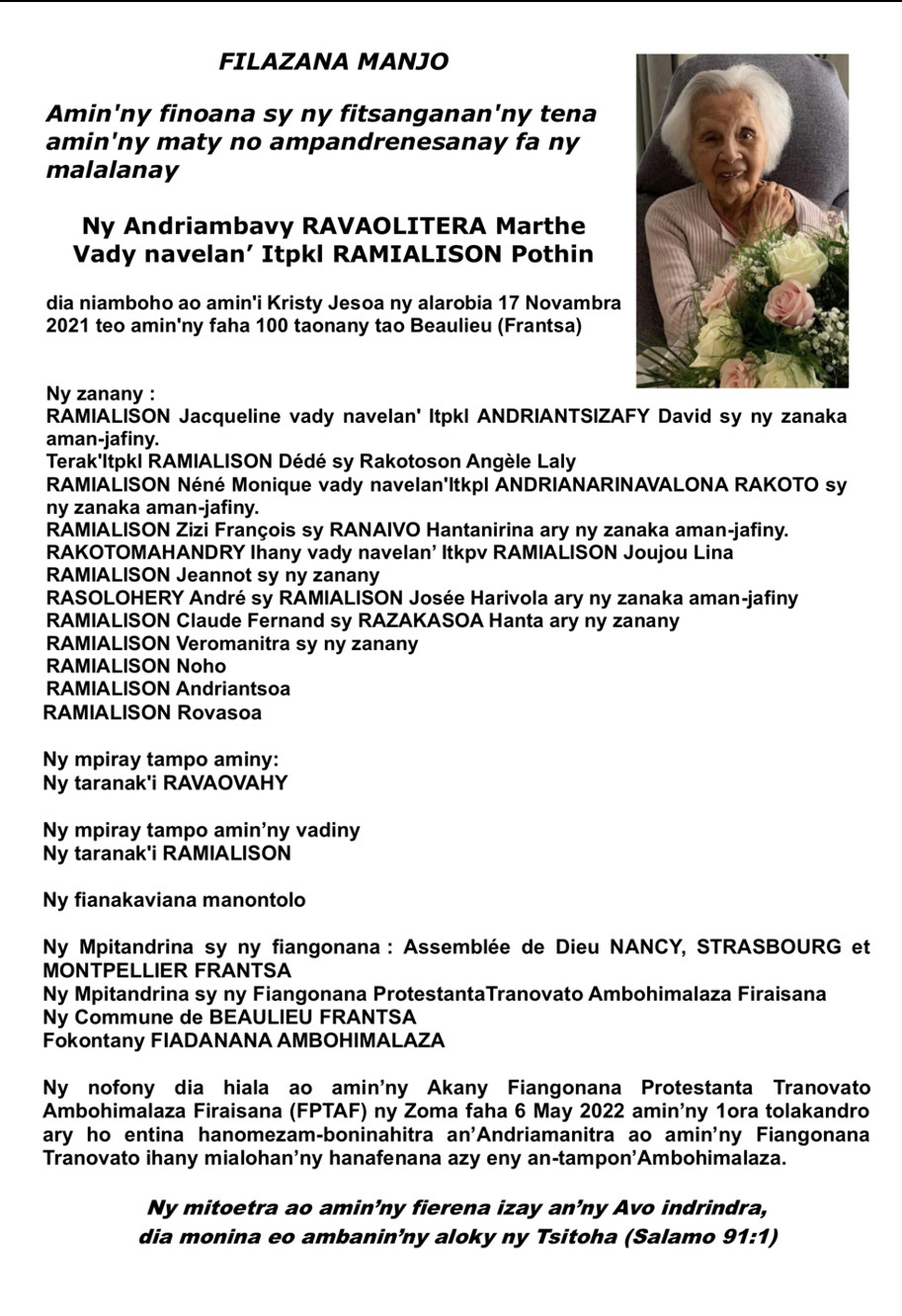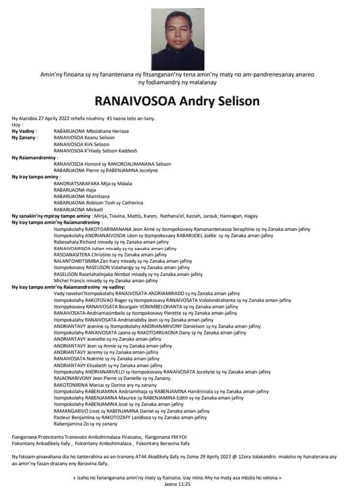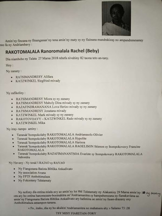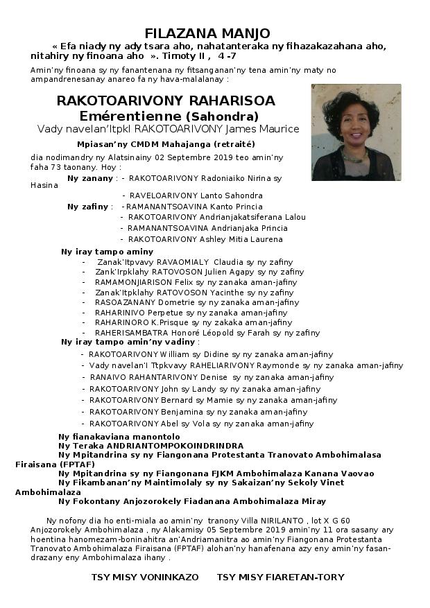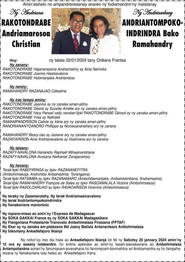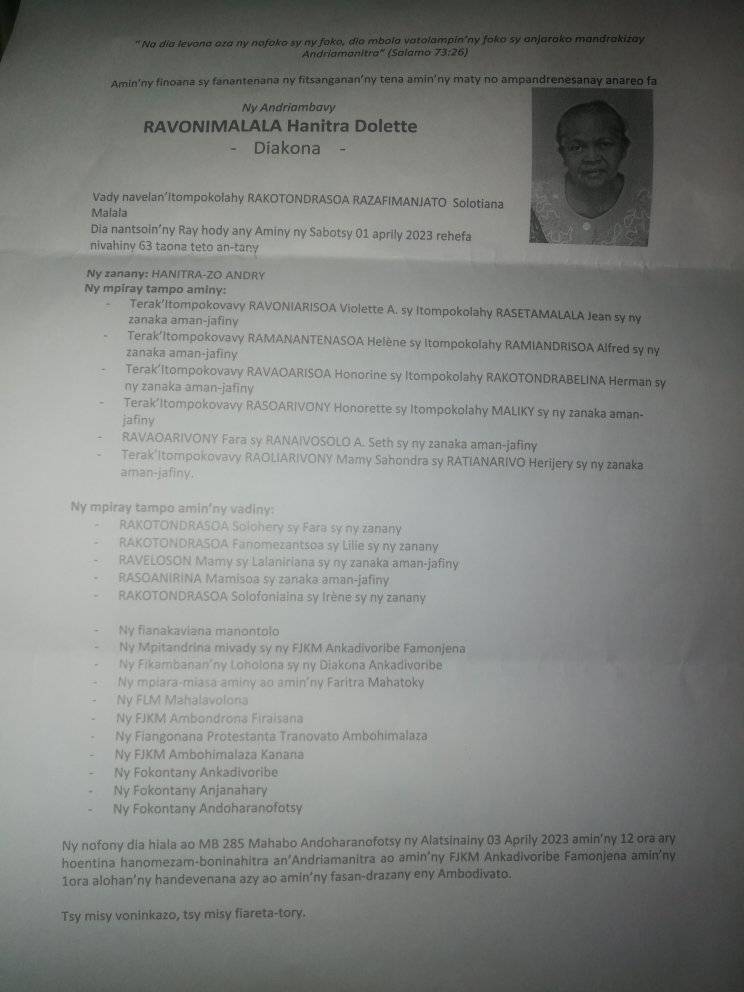 RANAIVO Rachel Solonirina (Loholona) Vady navelan’Itpklahy RABARISOA Michel