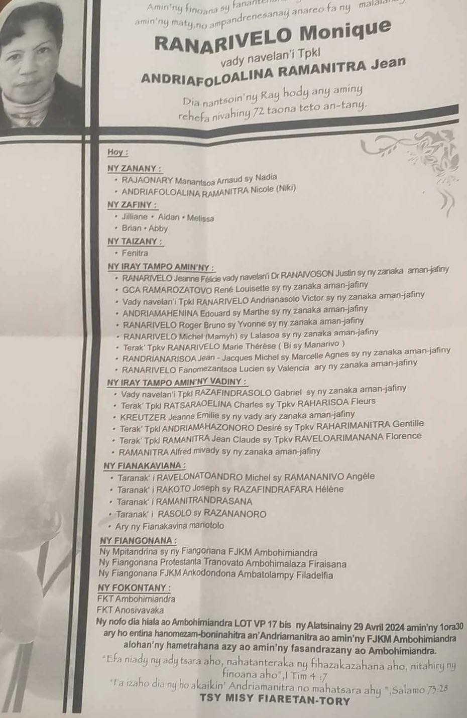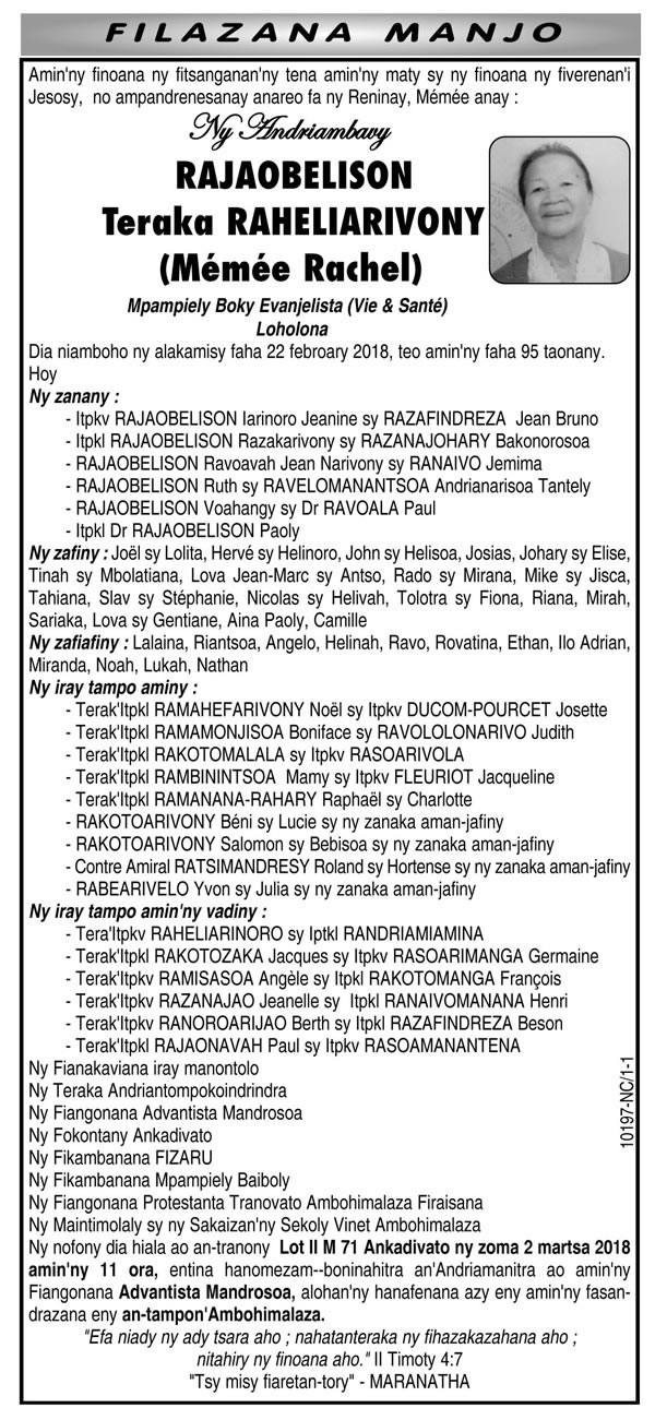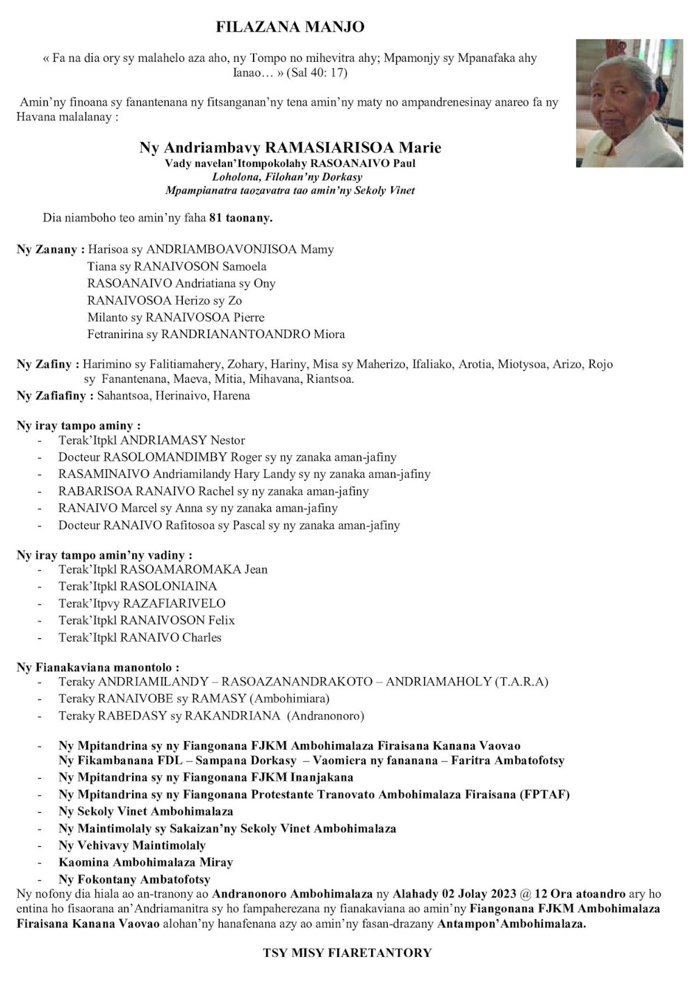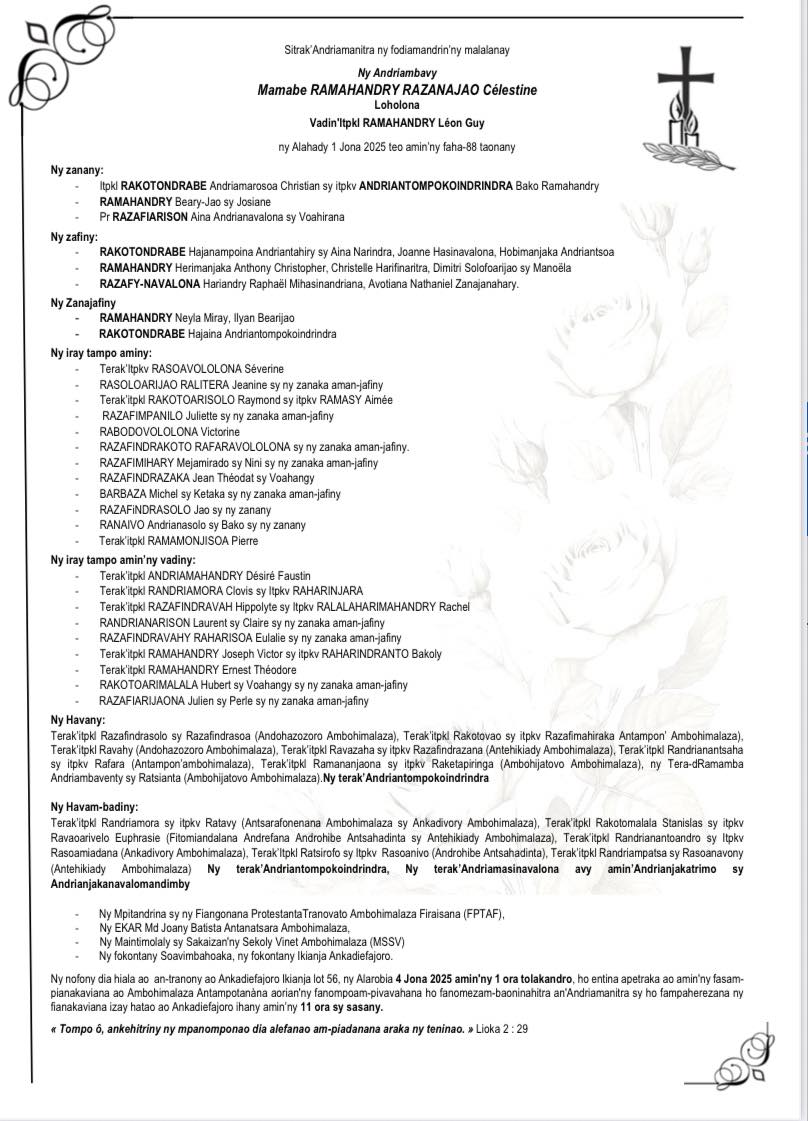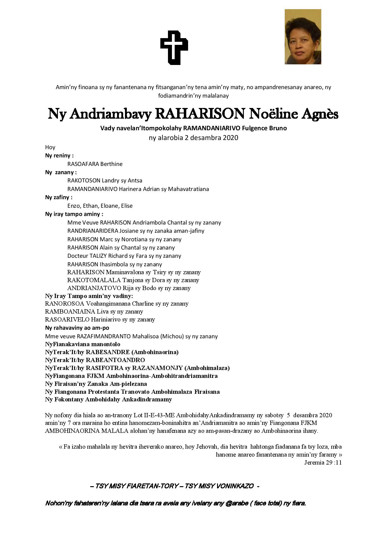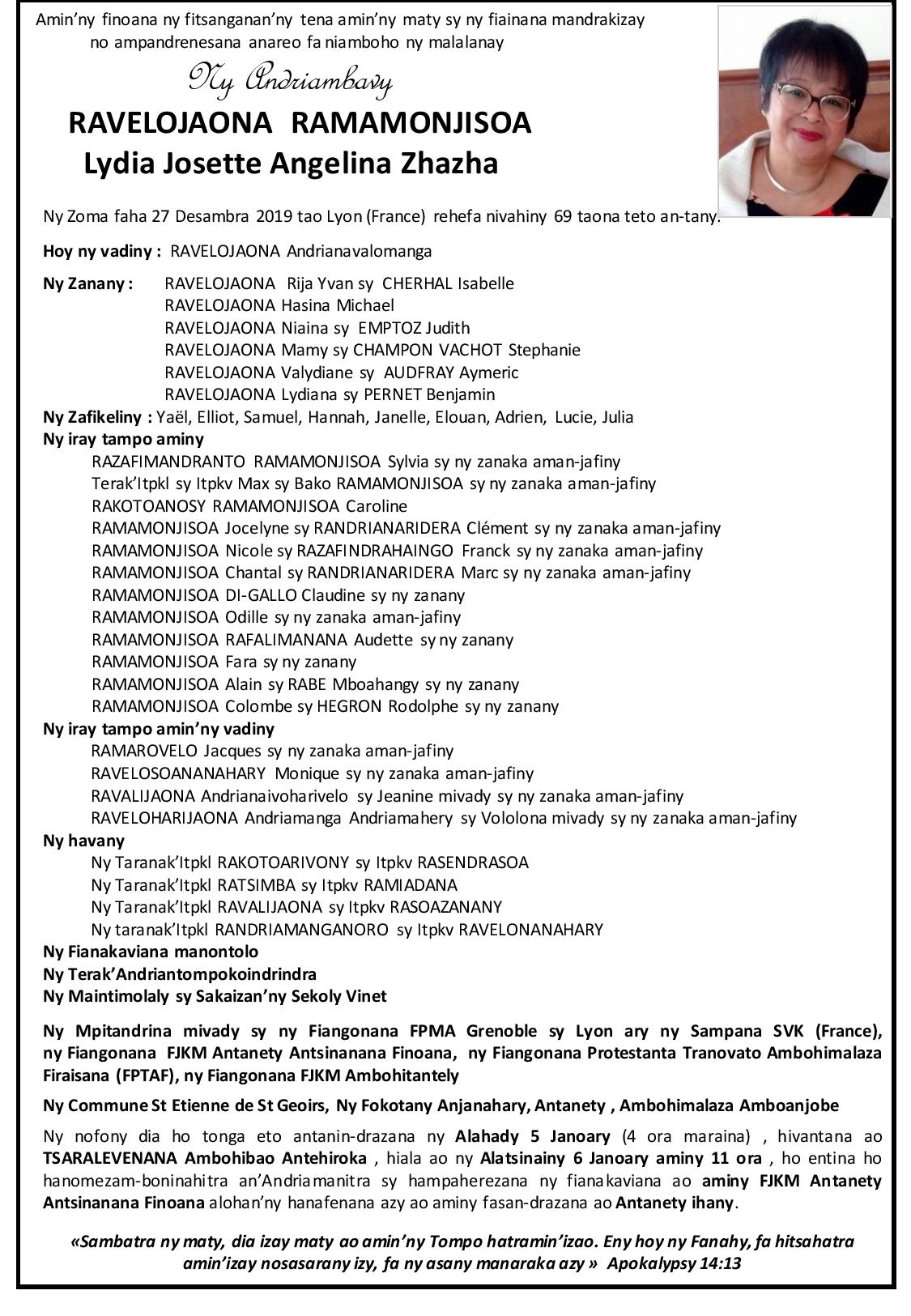 RANAIVO Rachel Solonirina (Loholona) Vady navelan’Itpklahy RABARISOA Michel