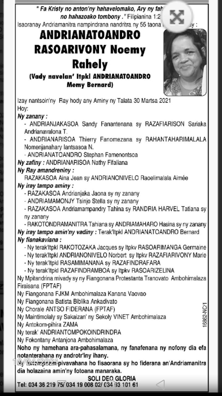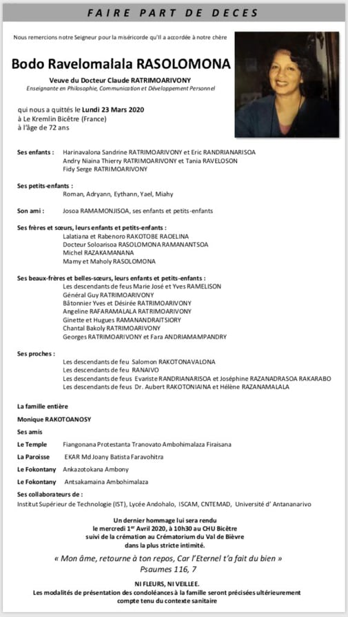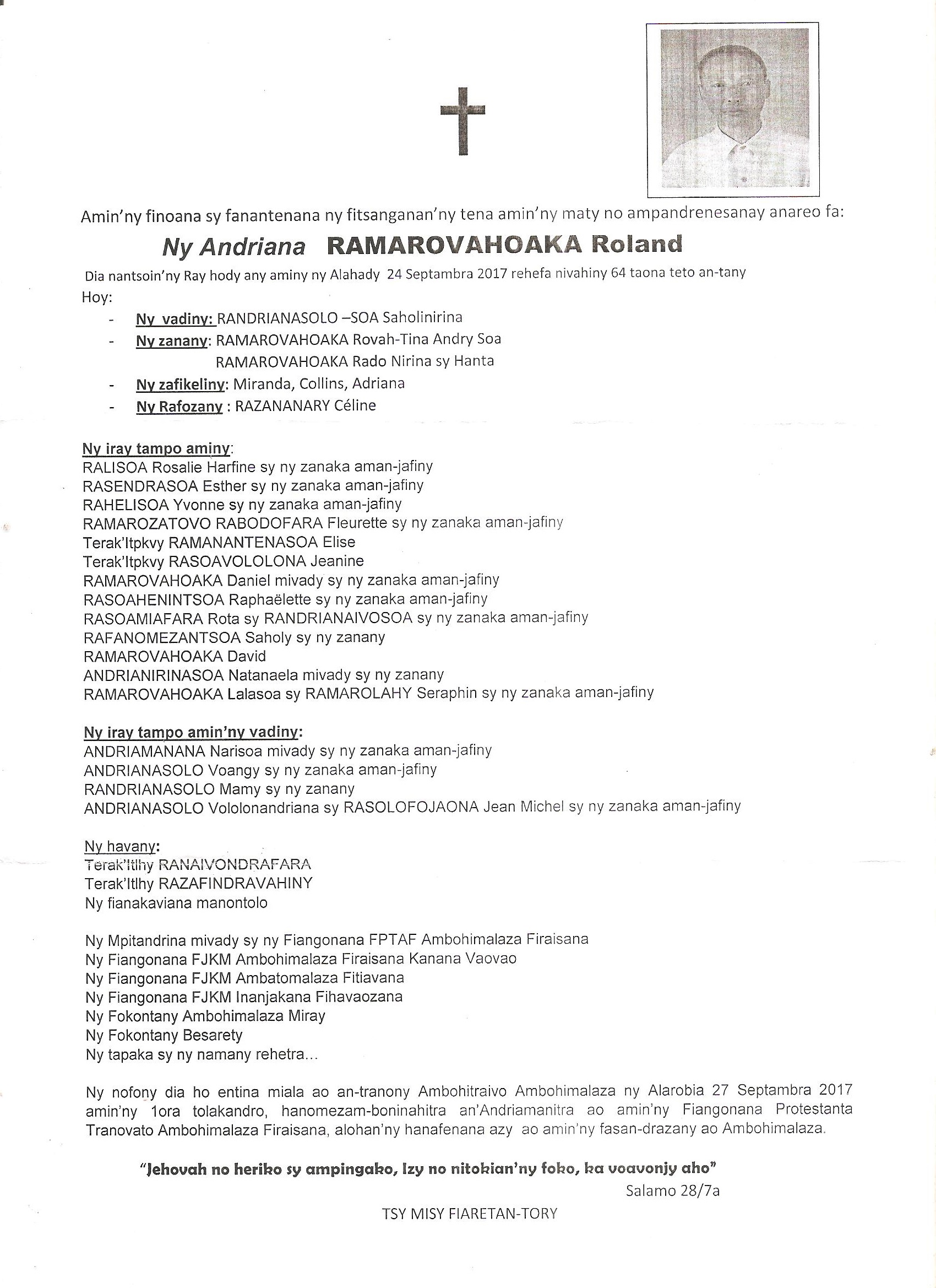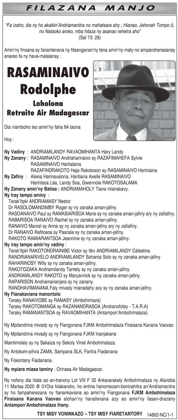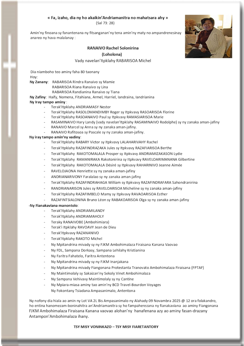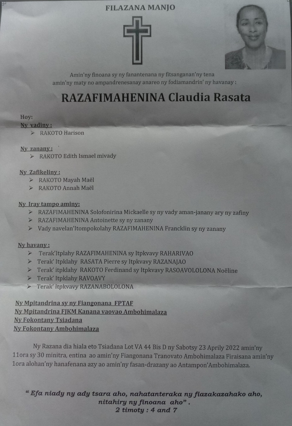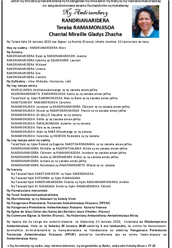 RANAIVO Rachel Solonirina (Loholona) Vady navelan’Itpklahy RABARISOA Michel