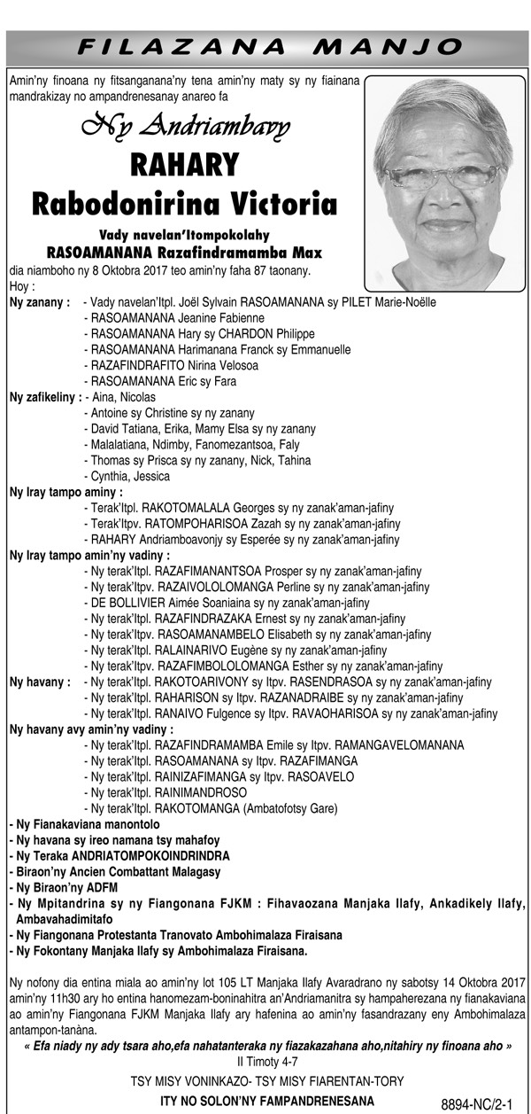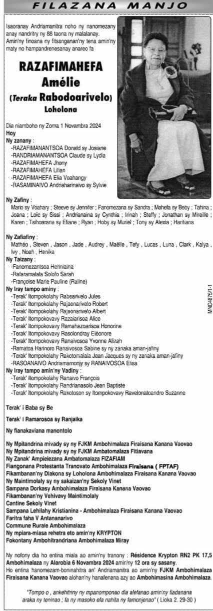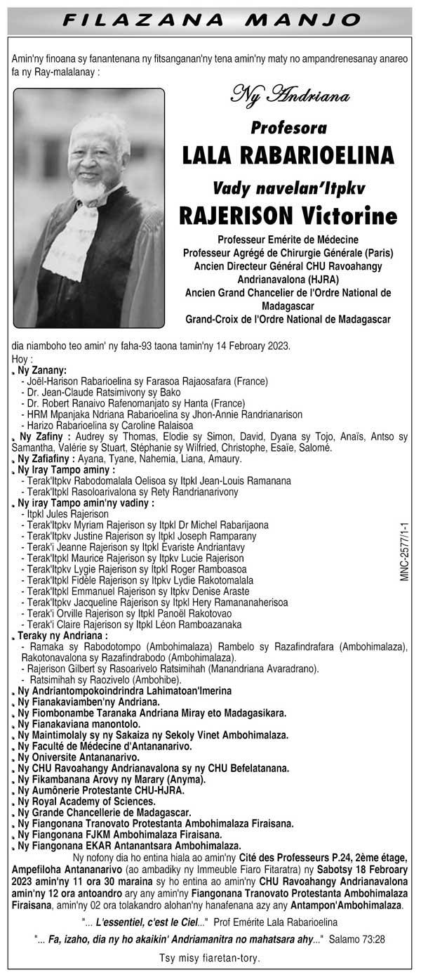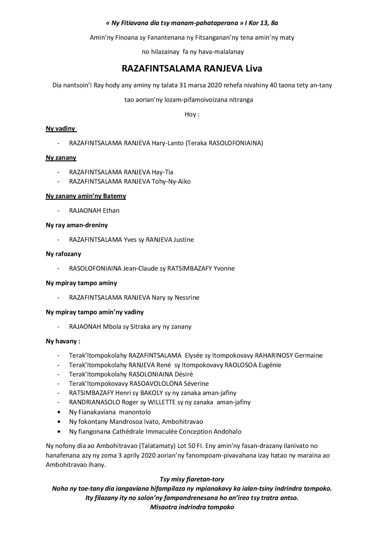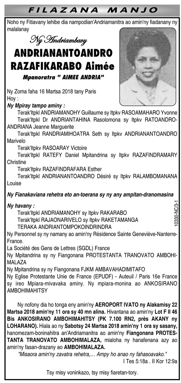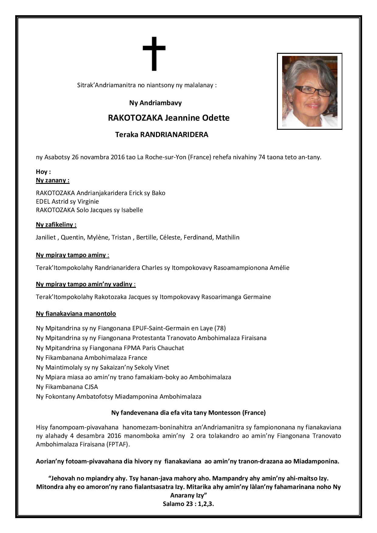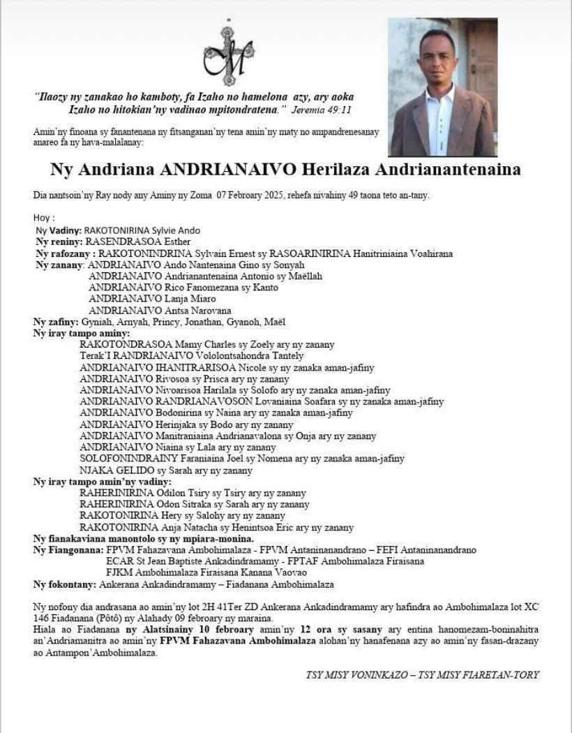 RANAIVO Rachel Solonirina (Loholona) Vady navelan’Itpklahy RABARISOA Michel