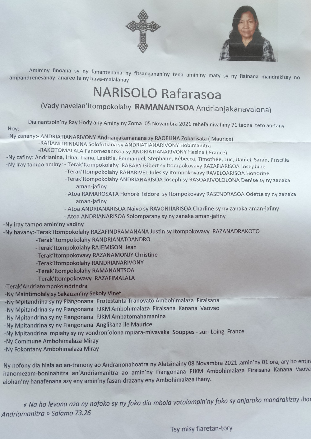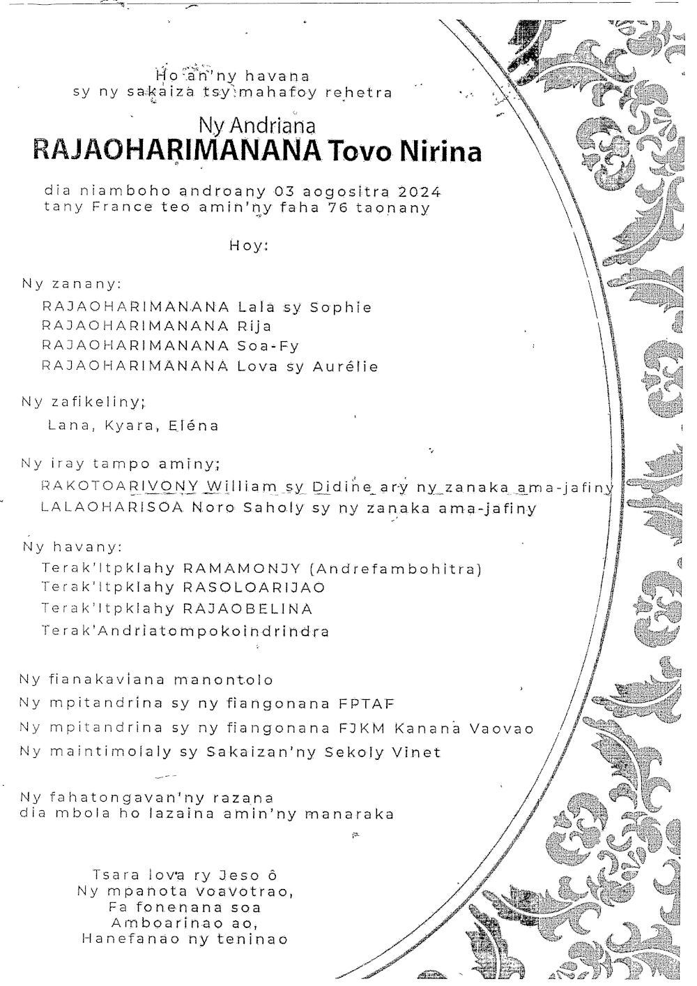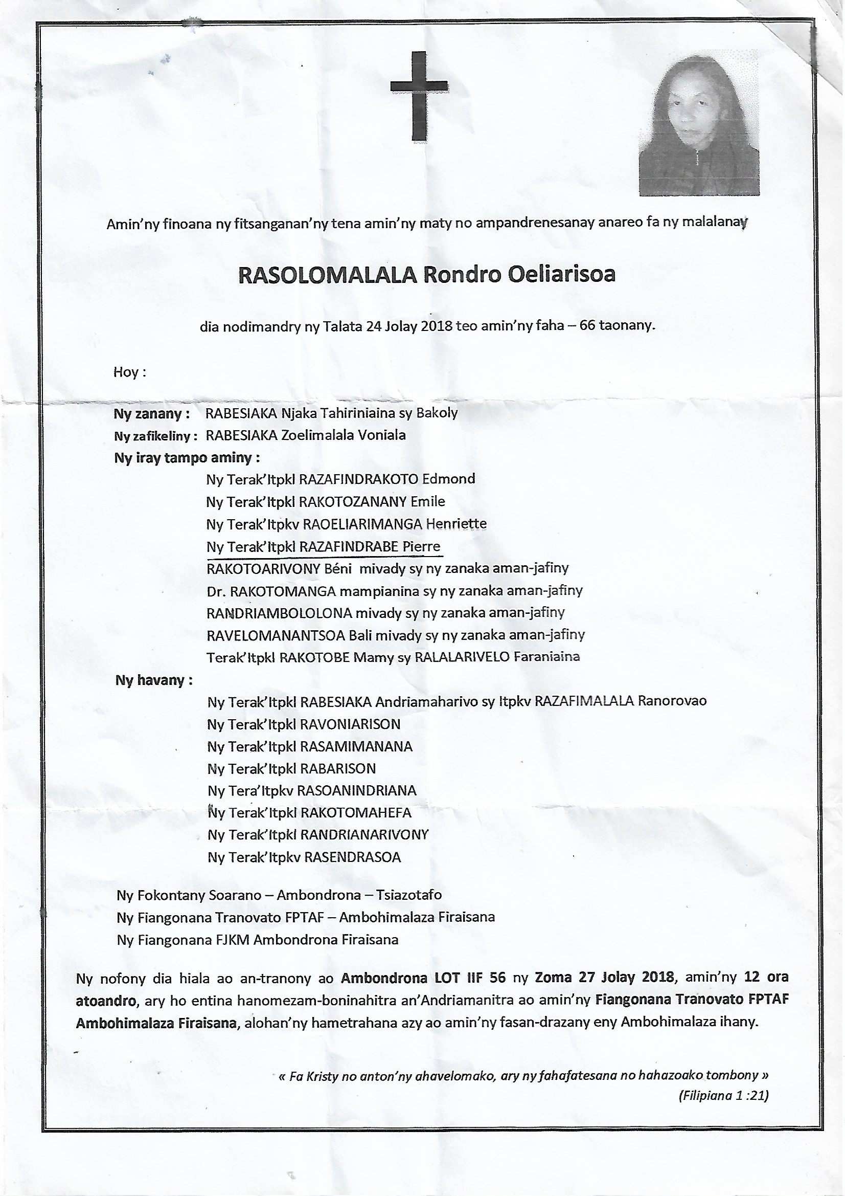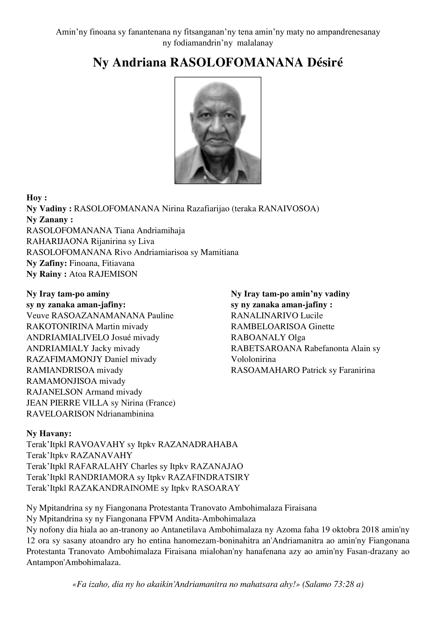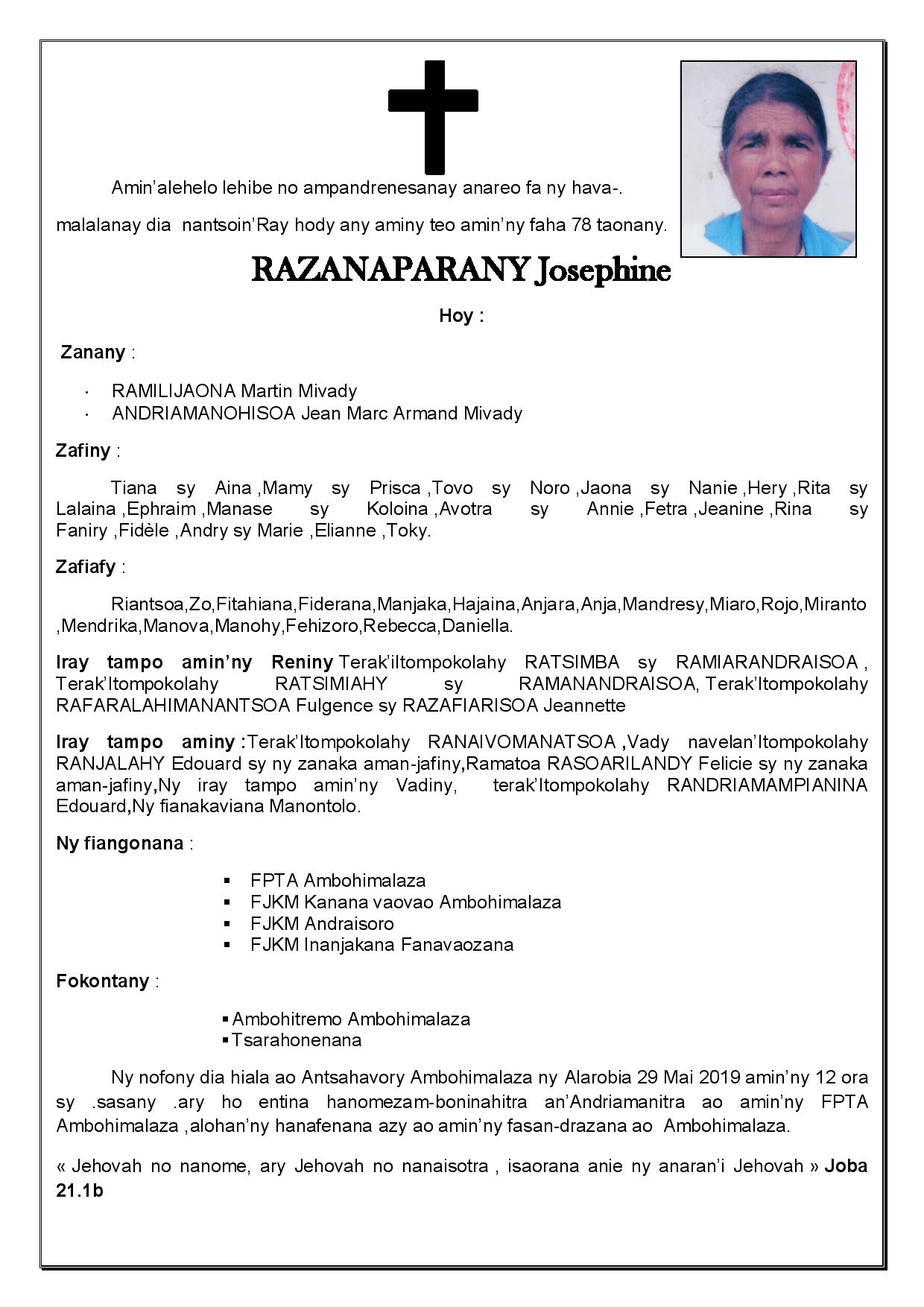 RANAIVO Rachel Solonirina (Loholona) Vady navelan’Itpklahy RABARISOA Michel