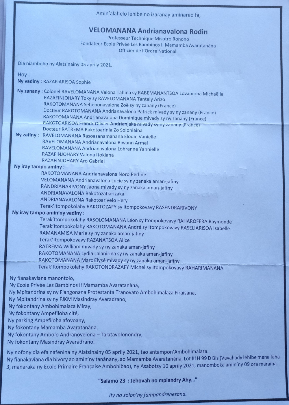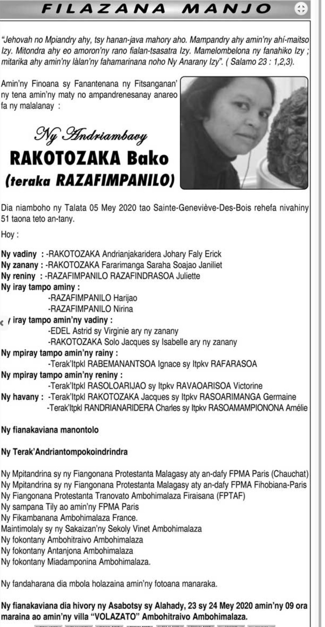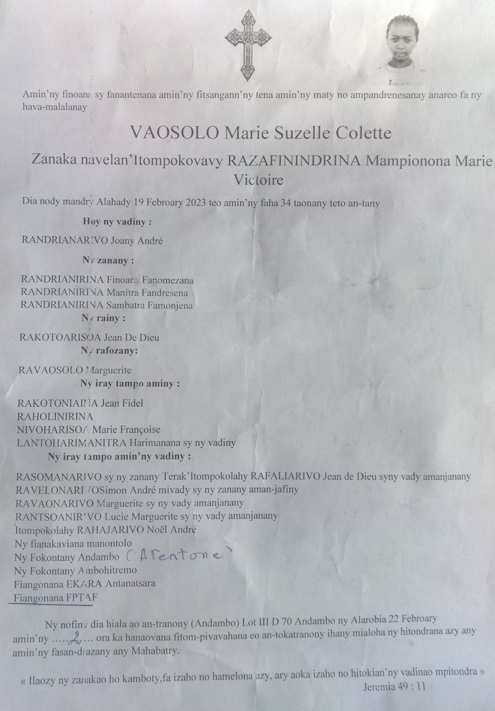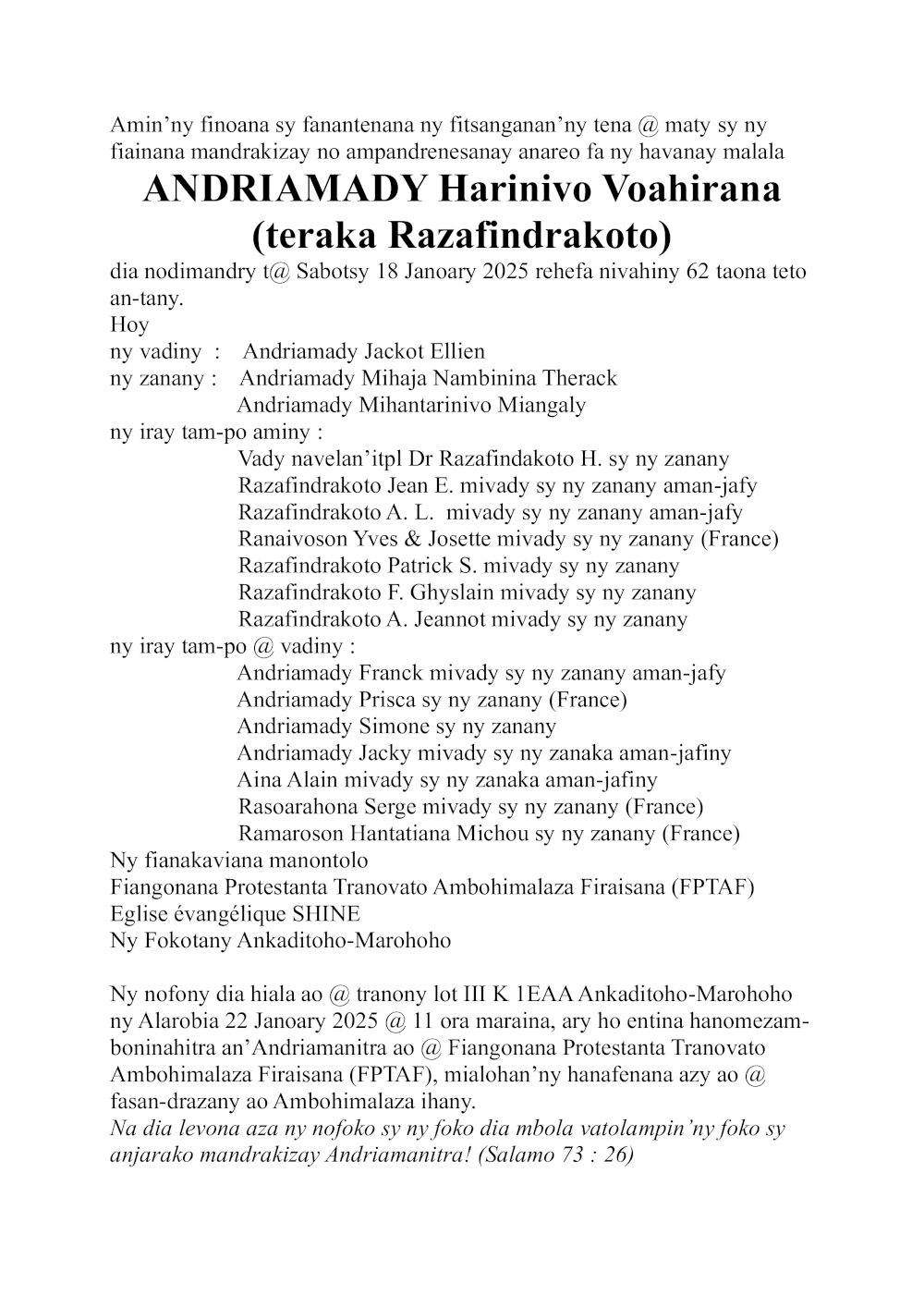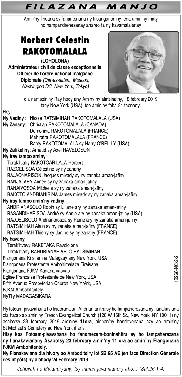 RANAIVO Rachel Solonirina (Loholona) Vady navelan’Itpklahy RABARISOA Michel