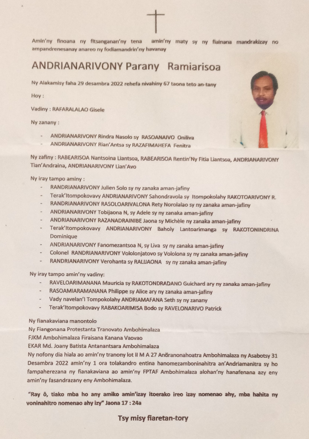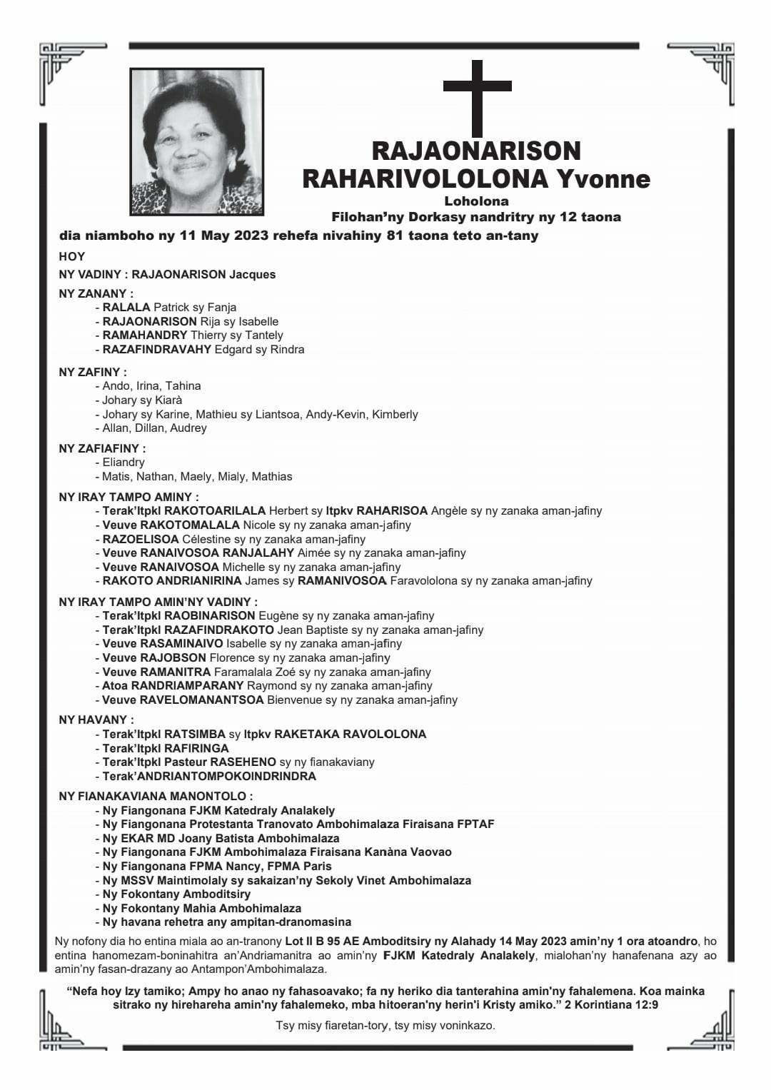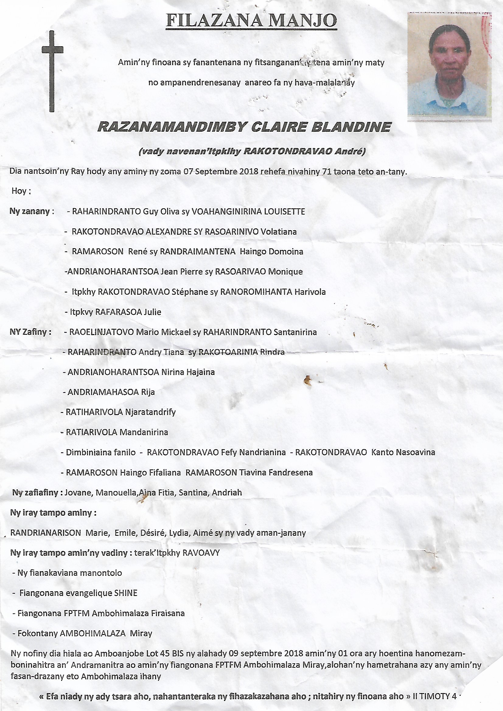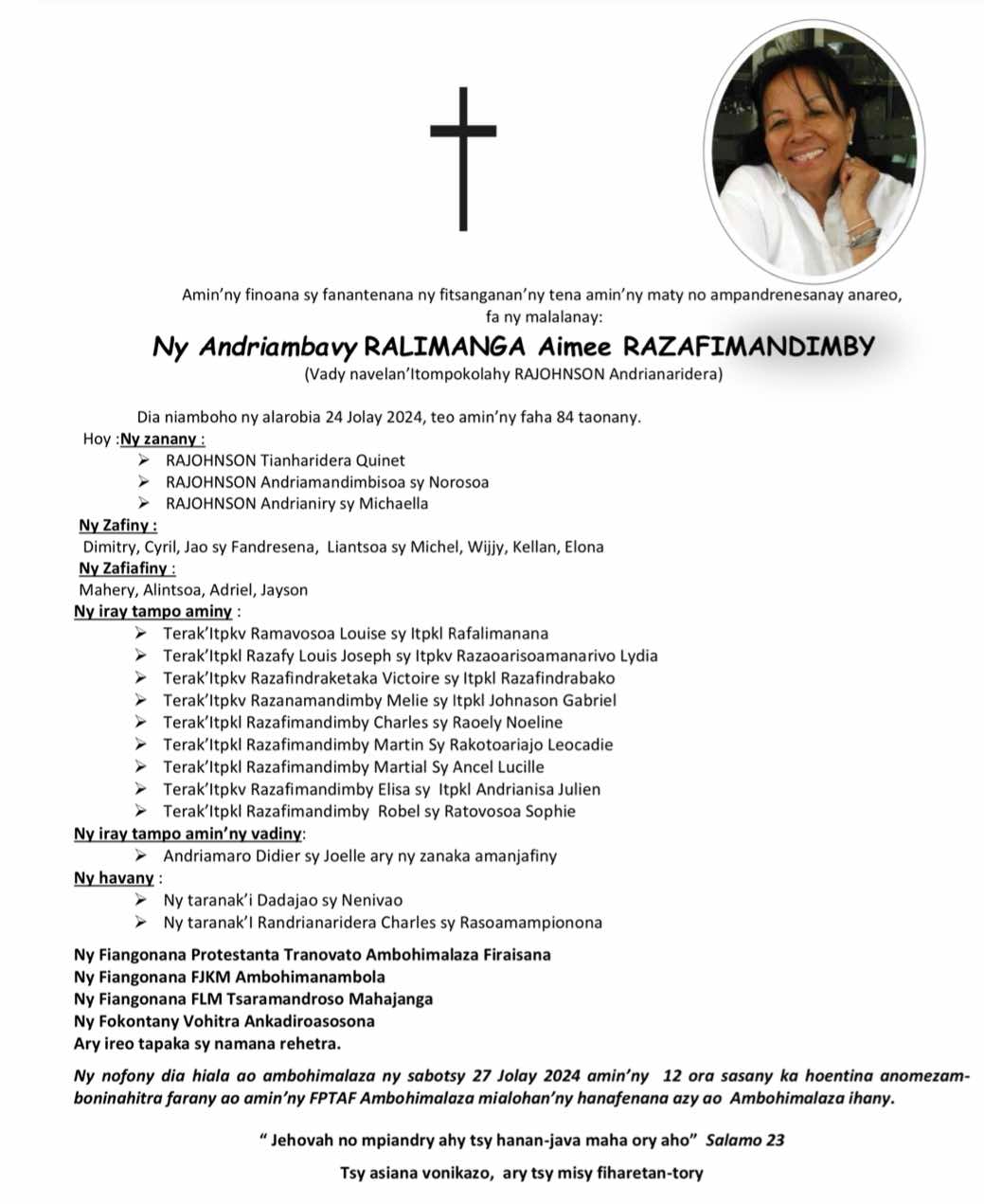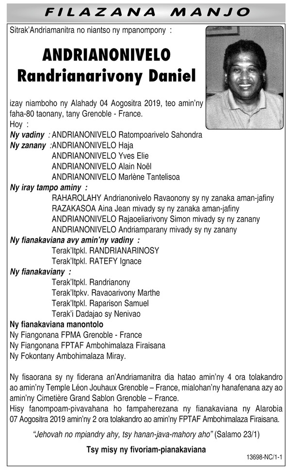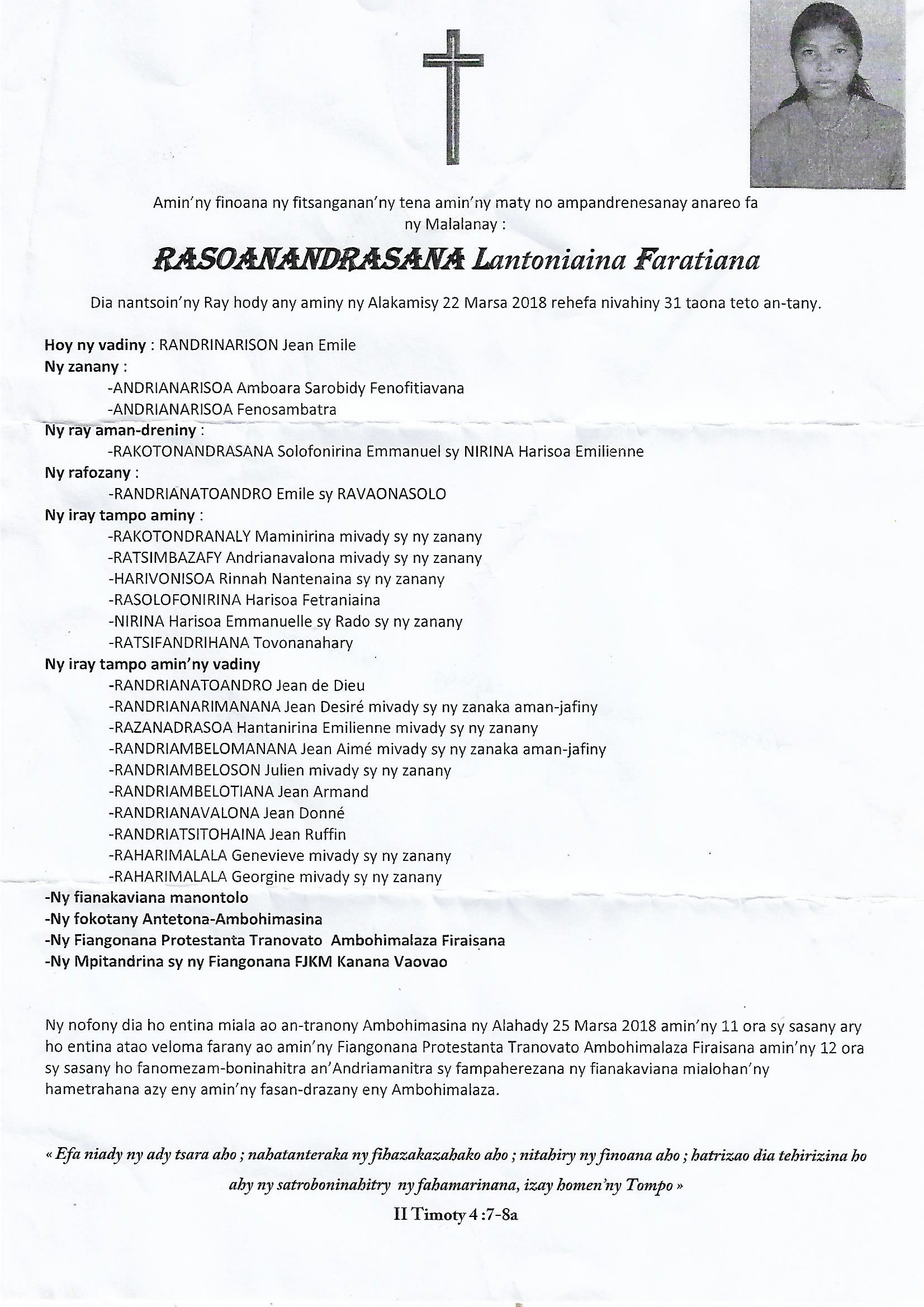 RANAIVO Rachel Solonirina (Loholona) Vady navelan’Itpklahy RABARISOA Michel