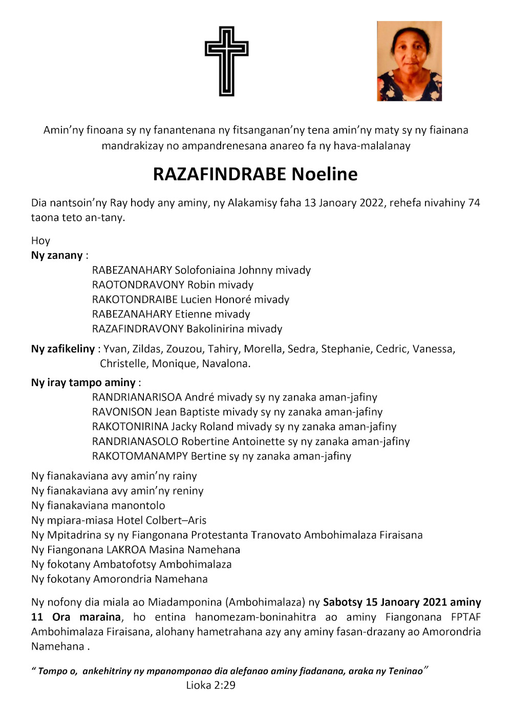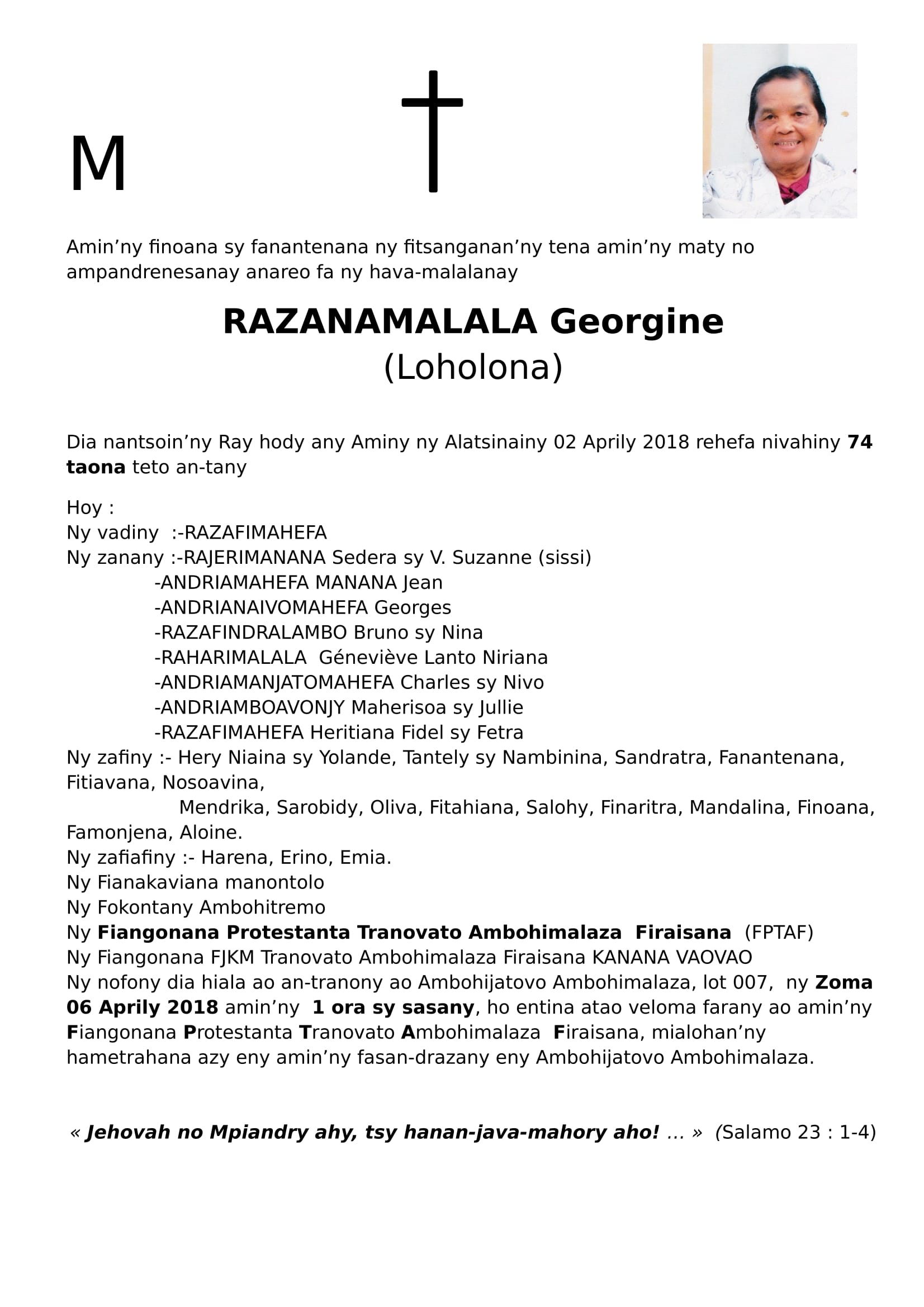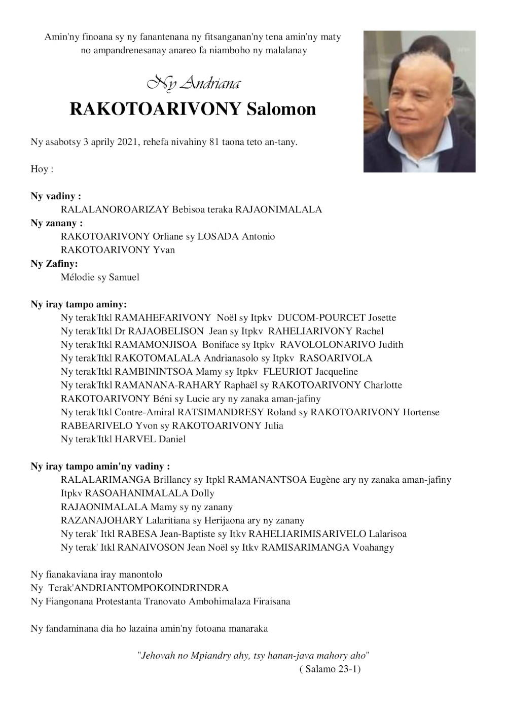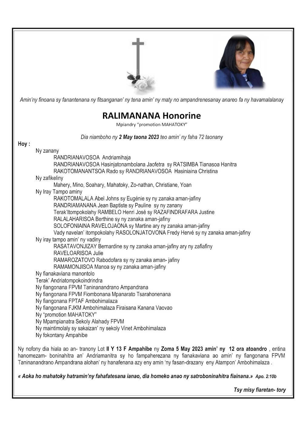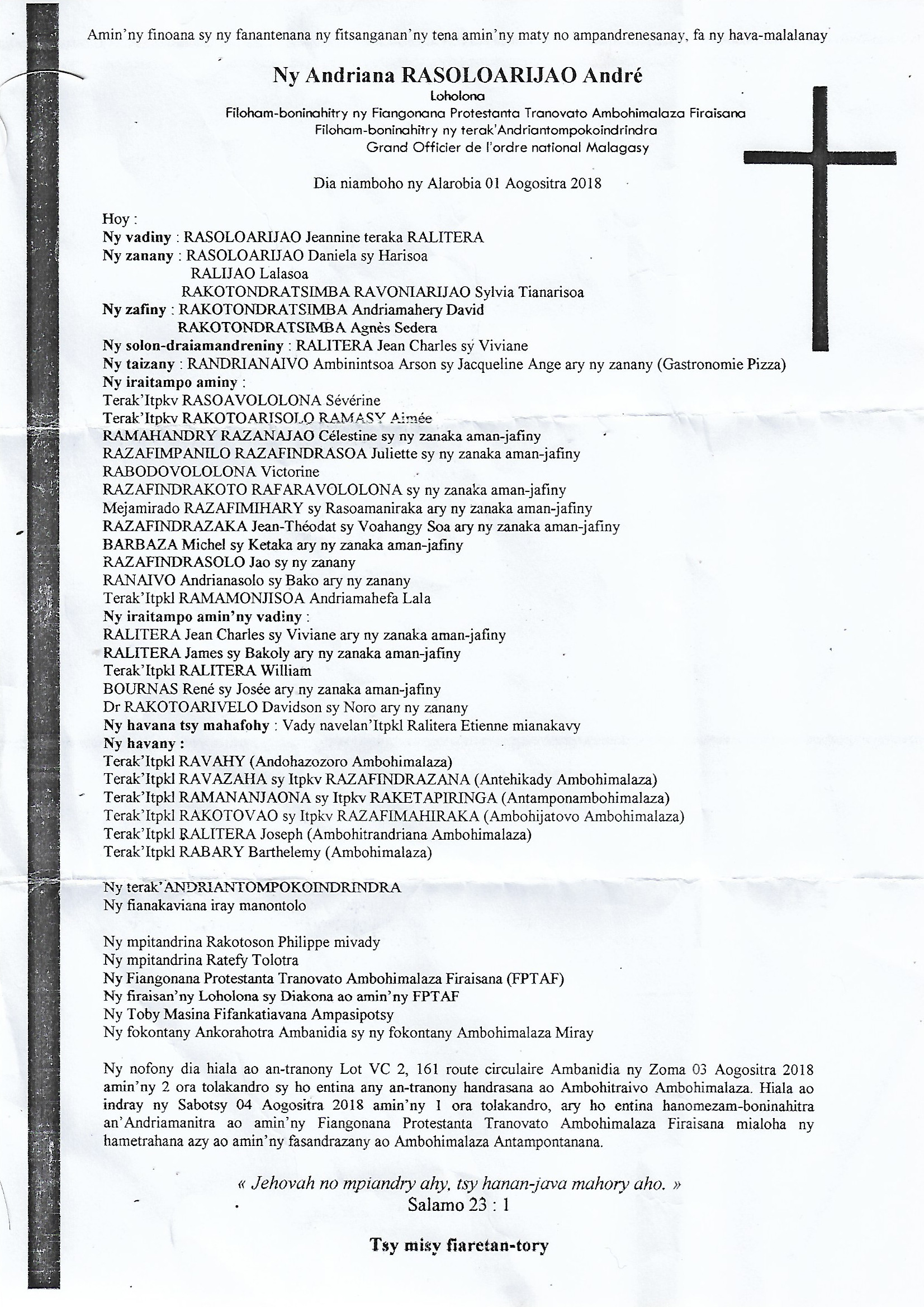 RANAIVO Rachel Solonirina (Loholona) Vady navelan’Itpklahy RABARISOA Michel