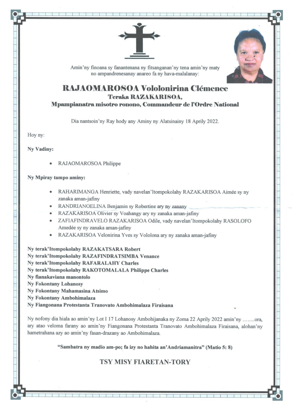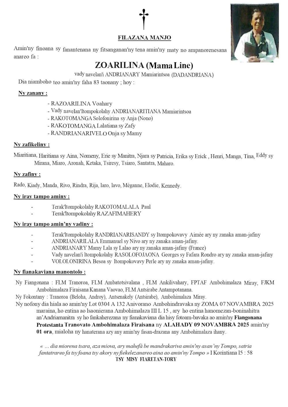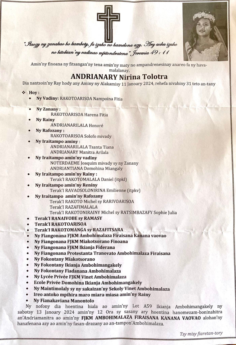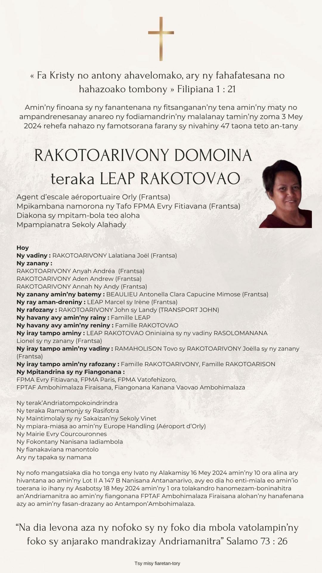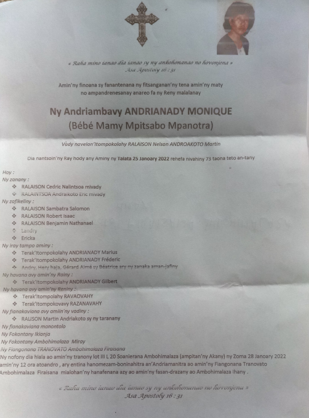 RANAIVO Rachel Solonirina (Loholona) Vady navelan’Itpklahy RABARISOA Michel