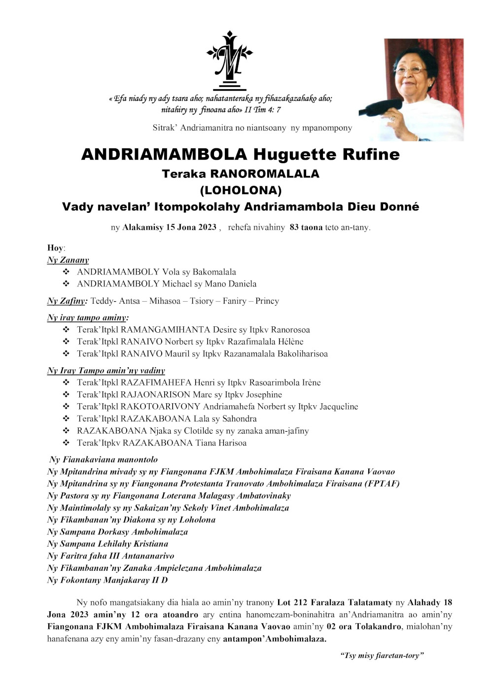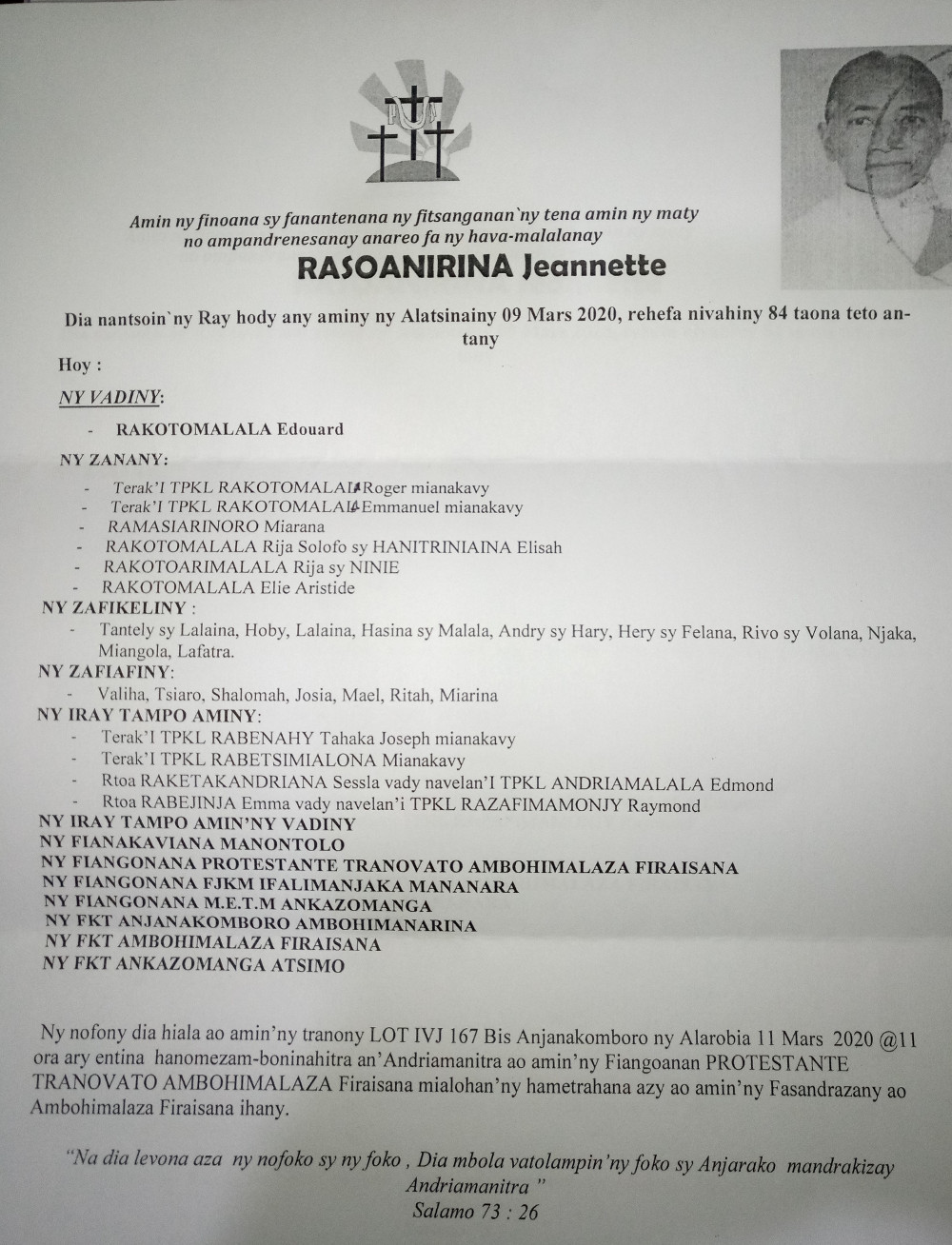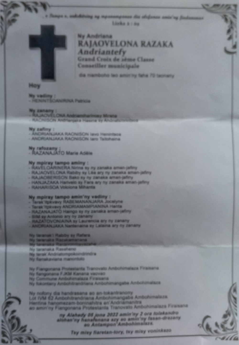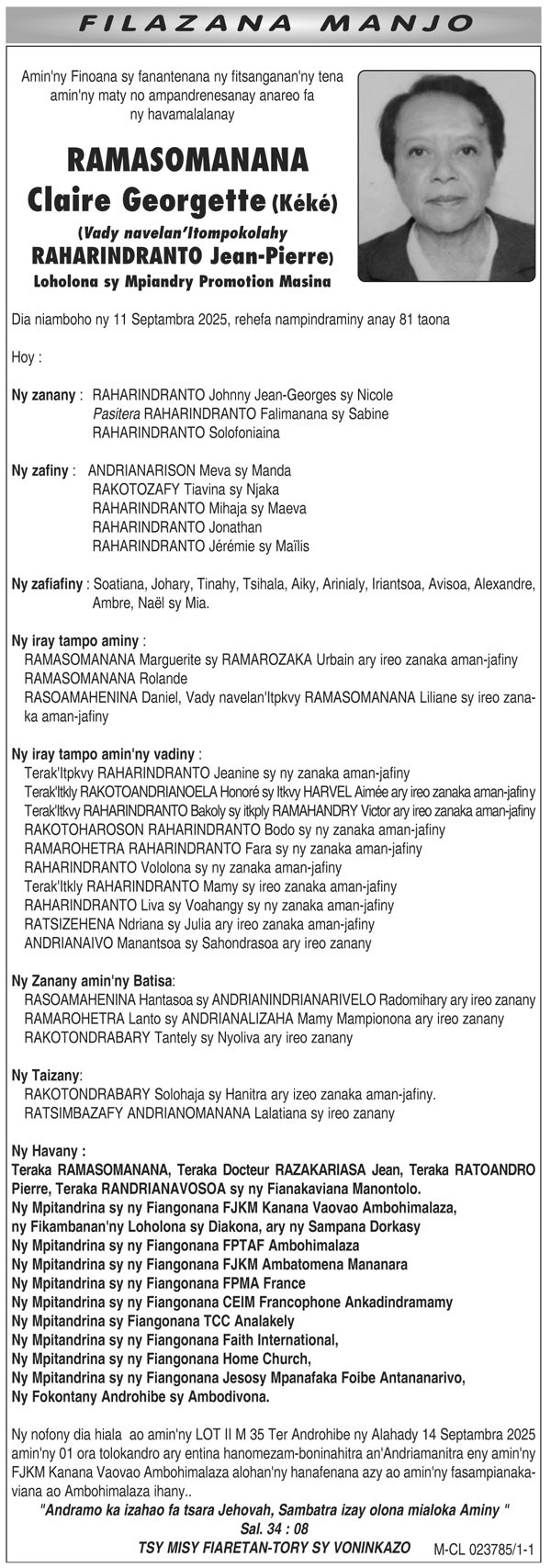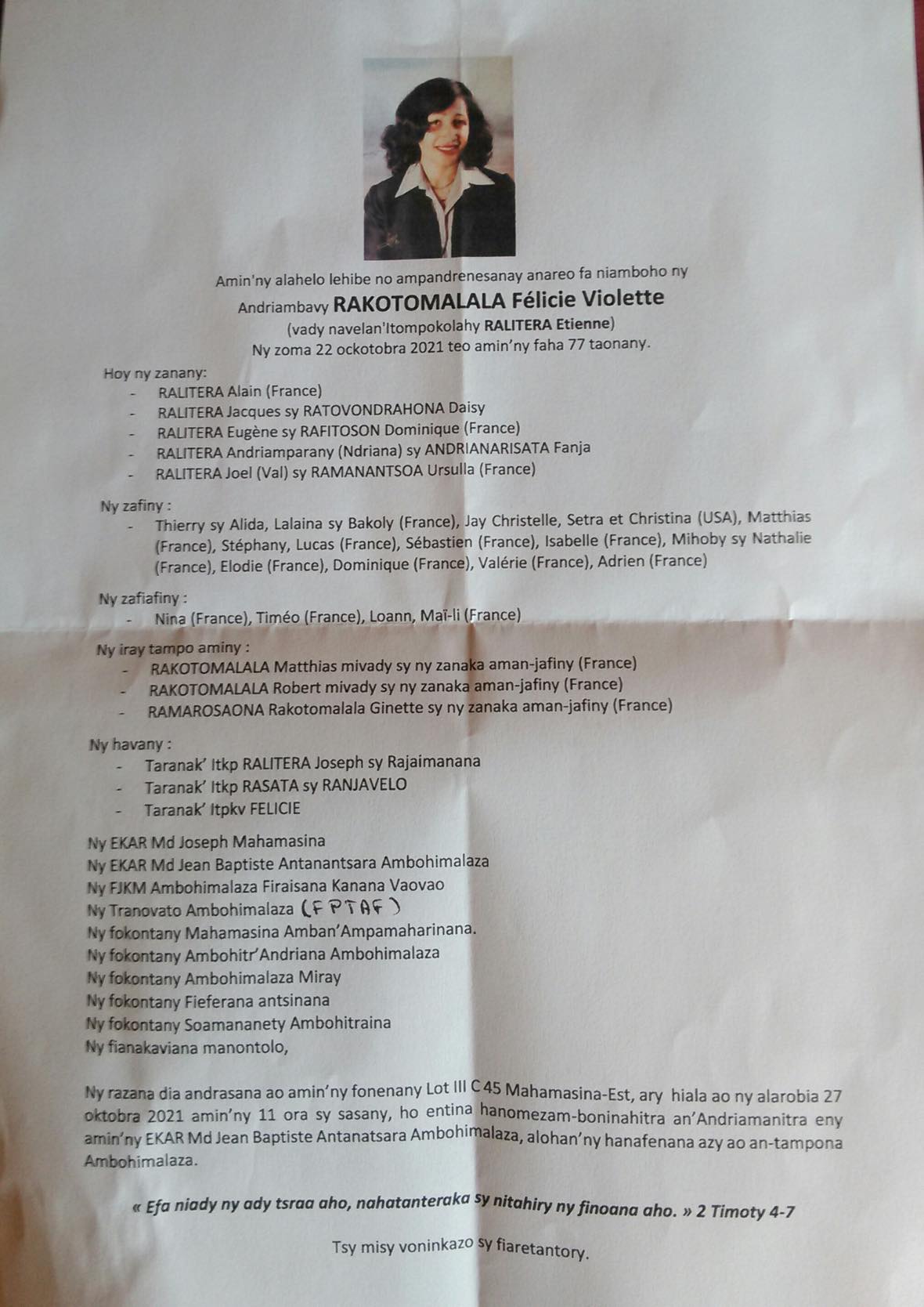 RANAIVO Rachel Solonirina (Loholona) Vady navelan’Itpklahy RABARISOA Michel