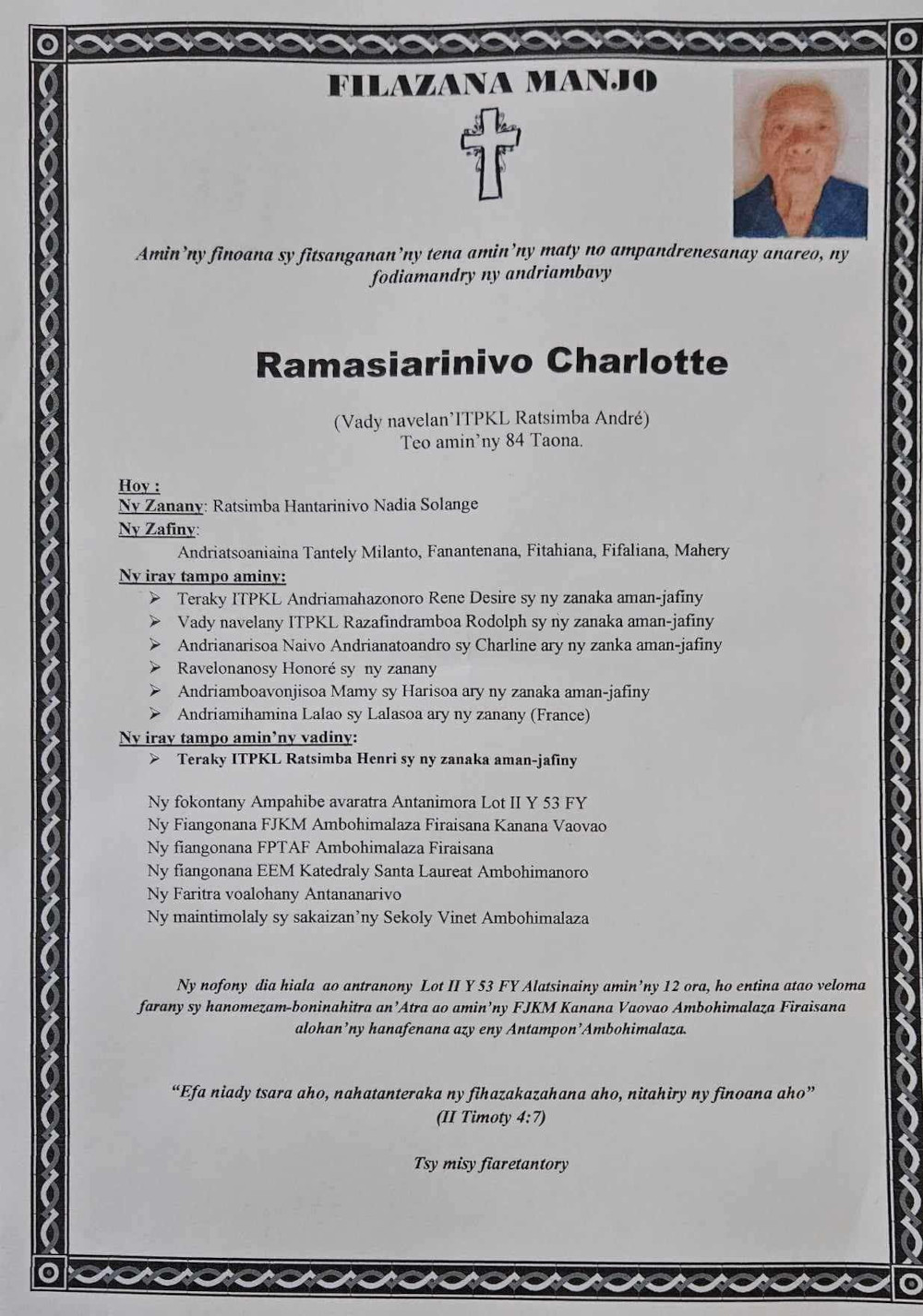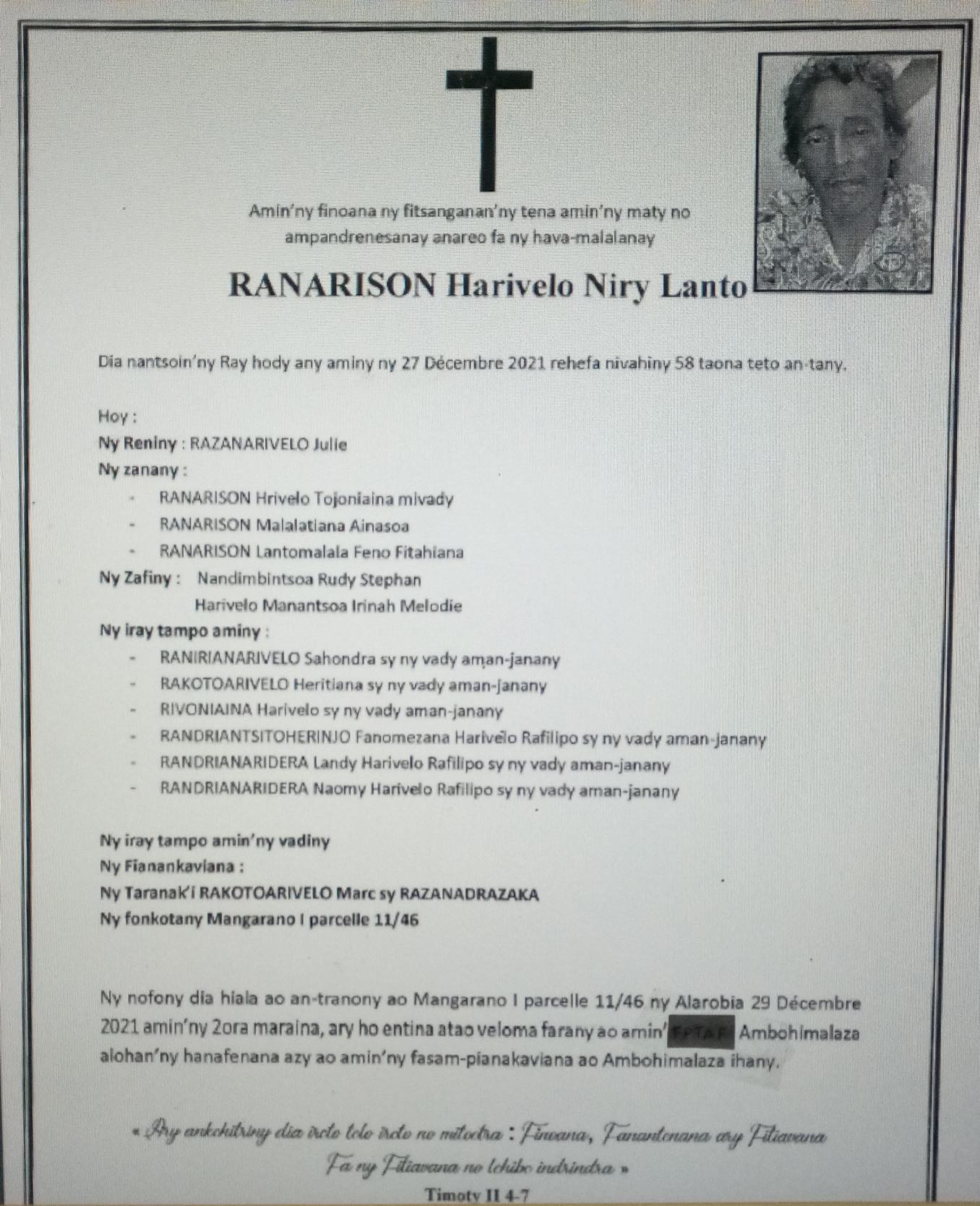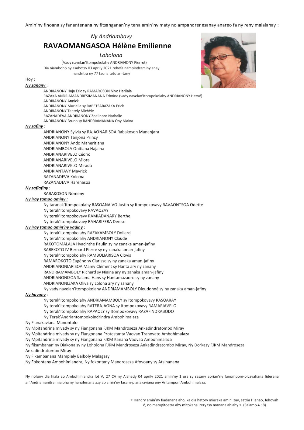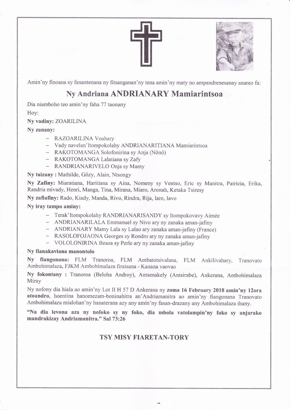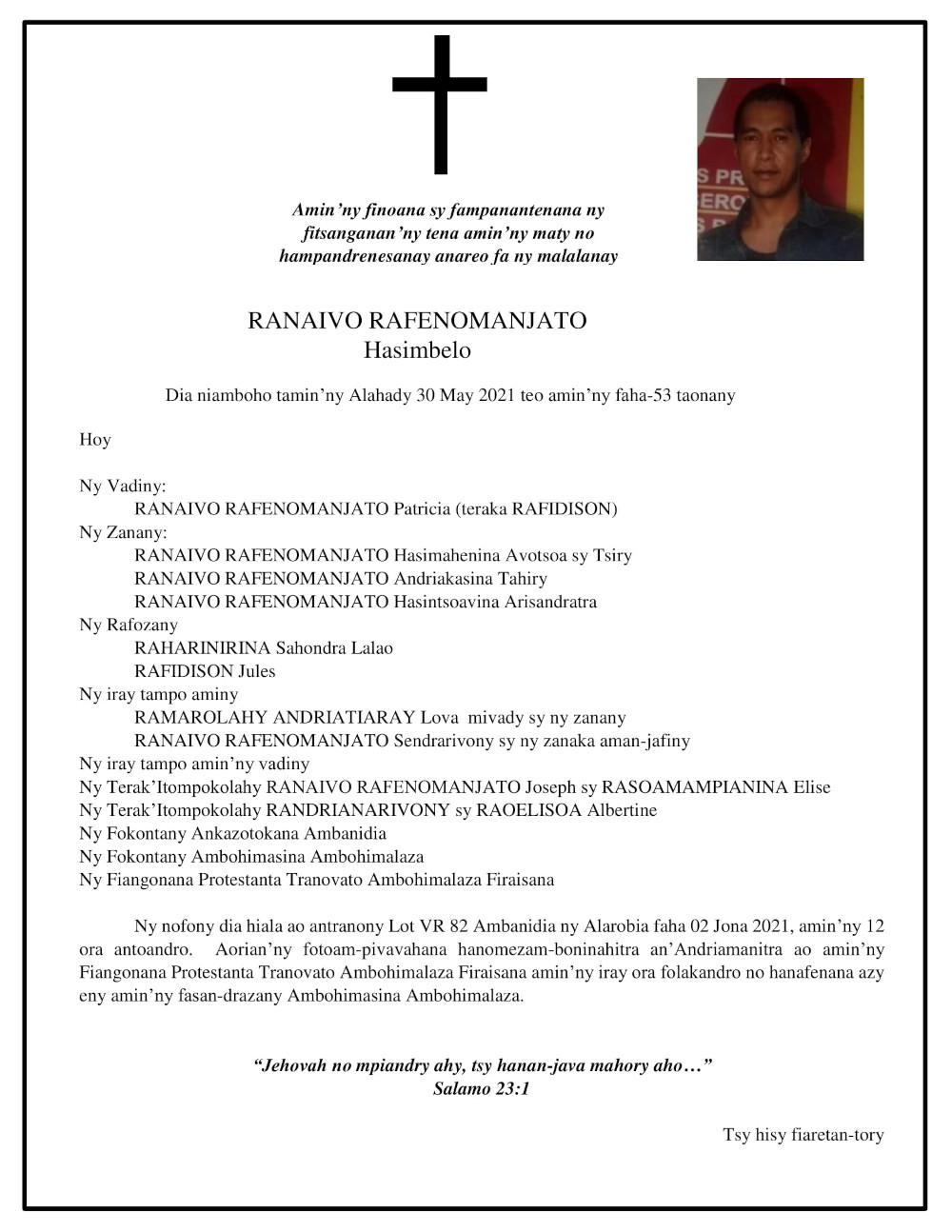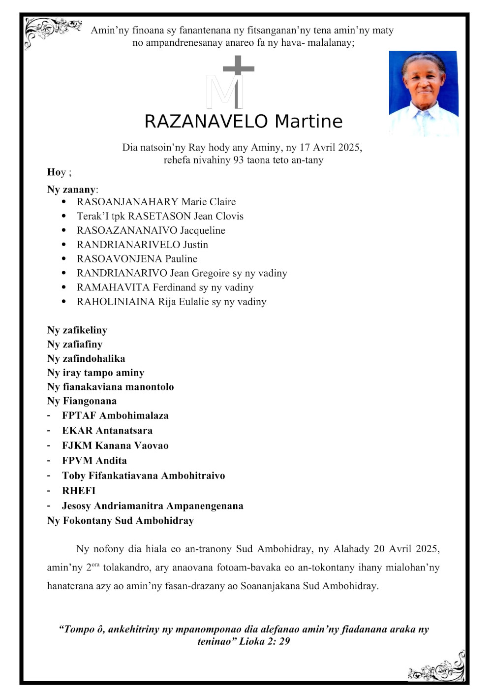 RANAIVO Rachel Solonirina (Loholona) Vady navelan’Itpklahy RABARISOA Michel