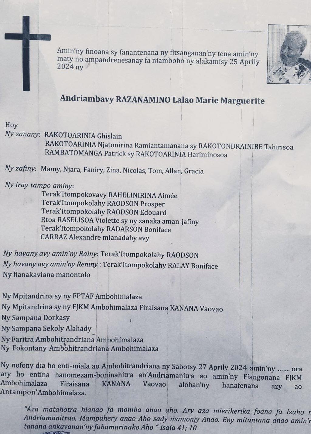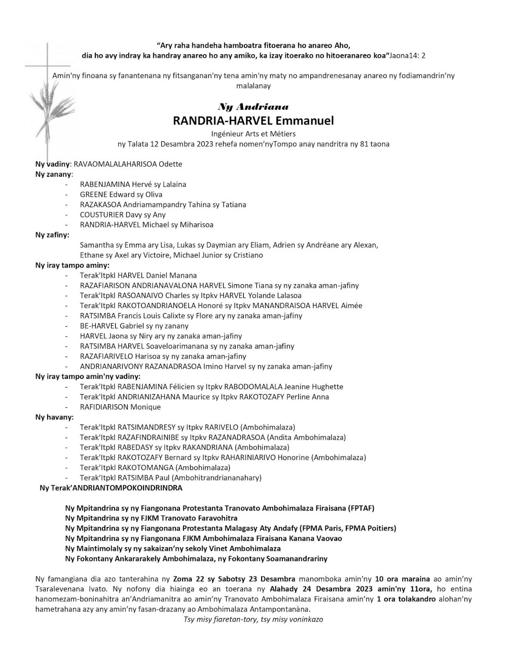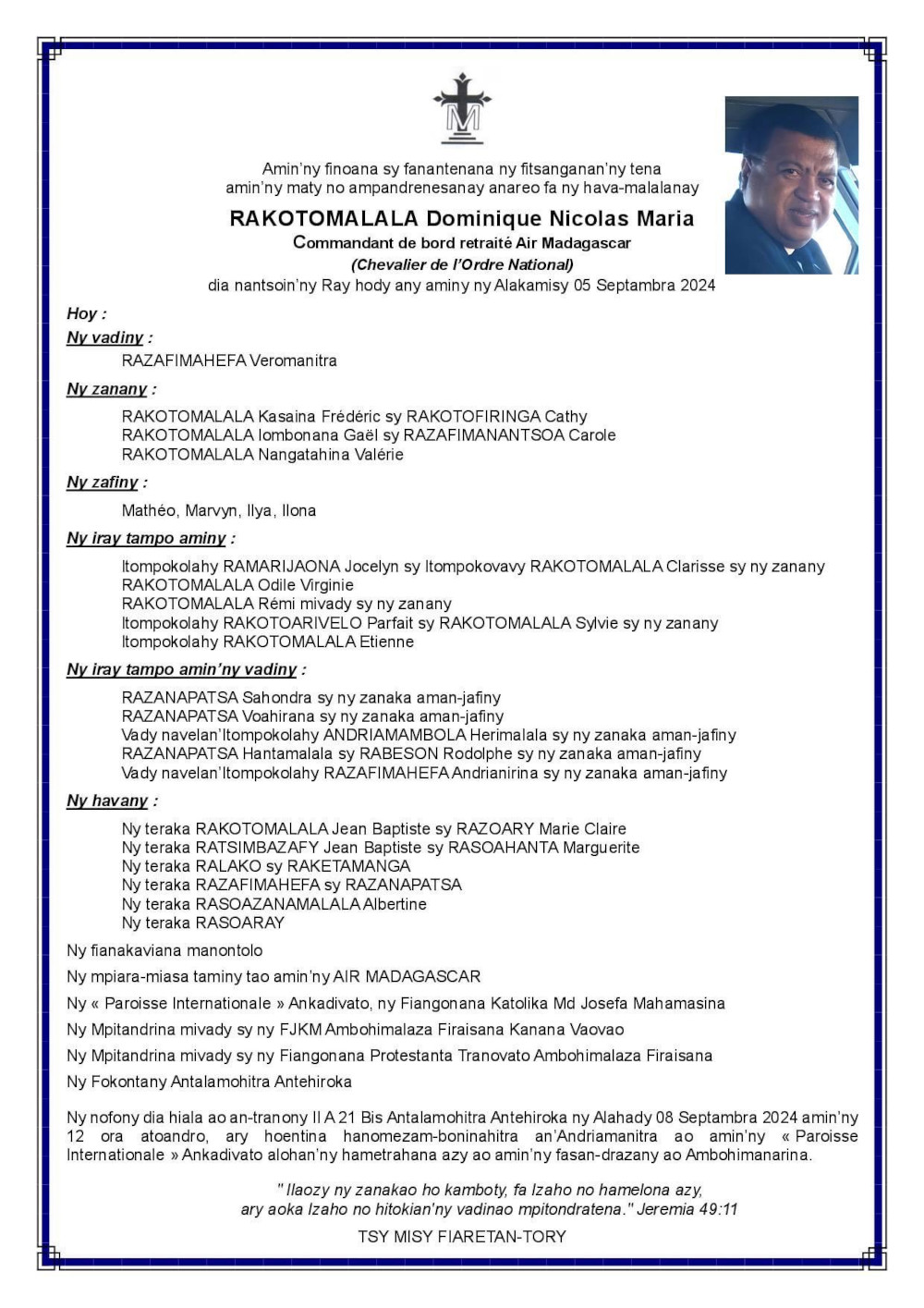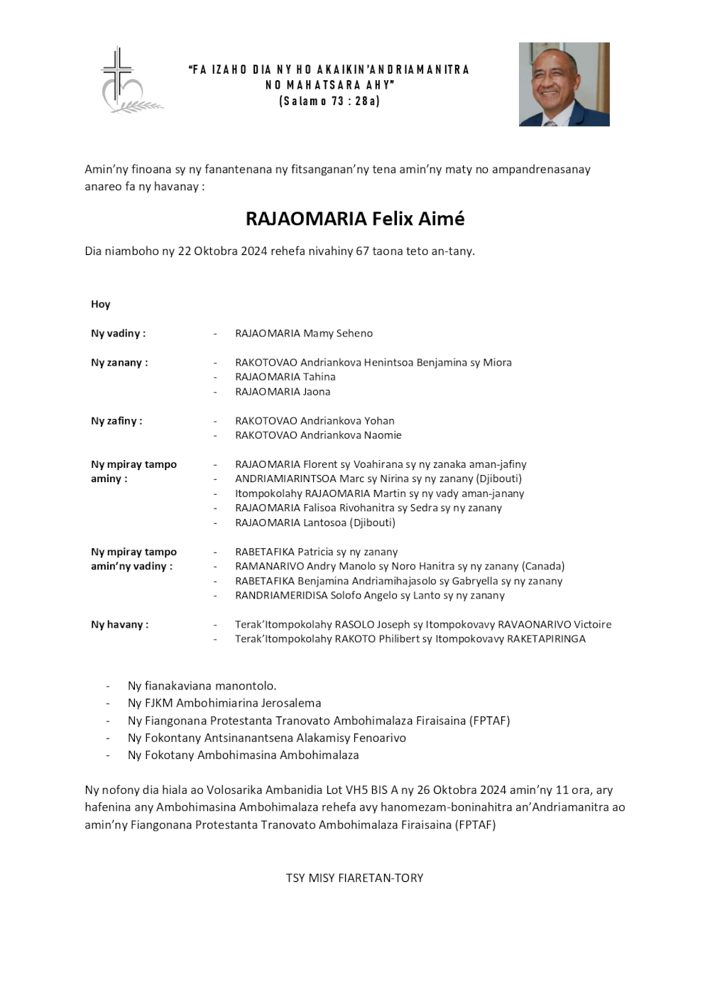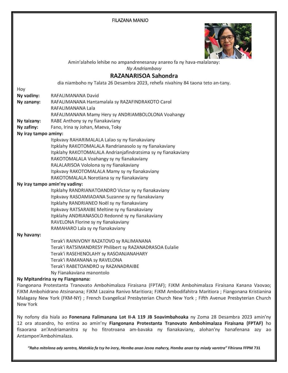 RANAIVO Rachel Solonirina (Loholona) Vady navelan’Itpklahy RABARISOA Michel