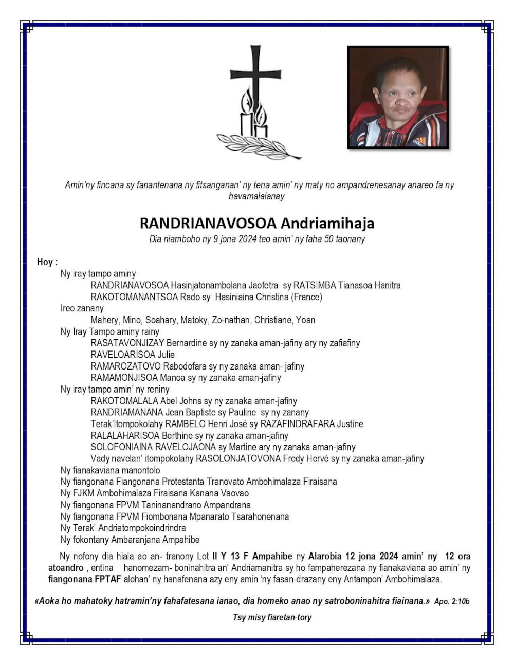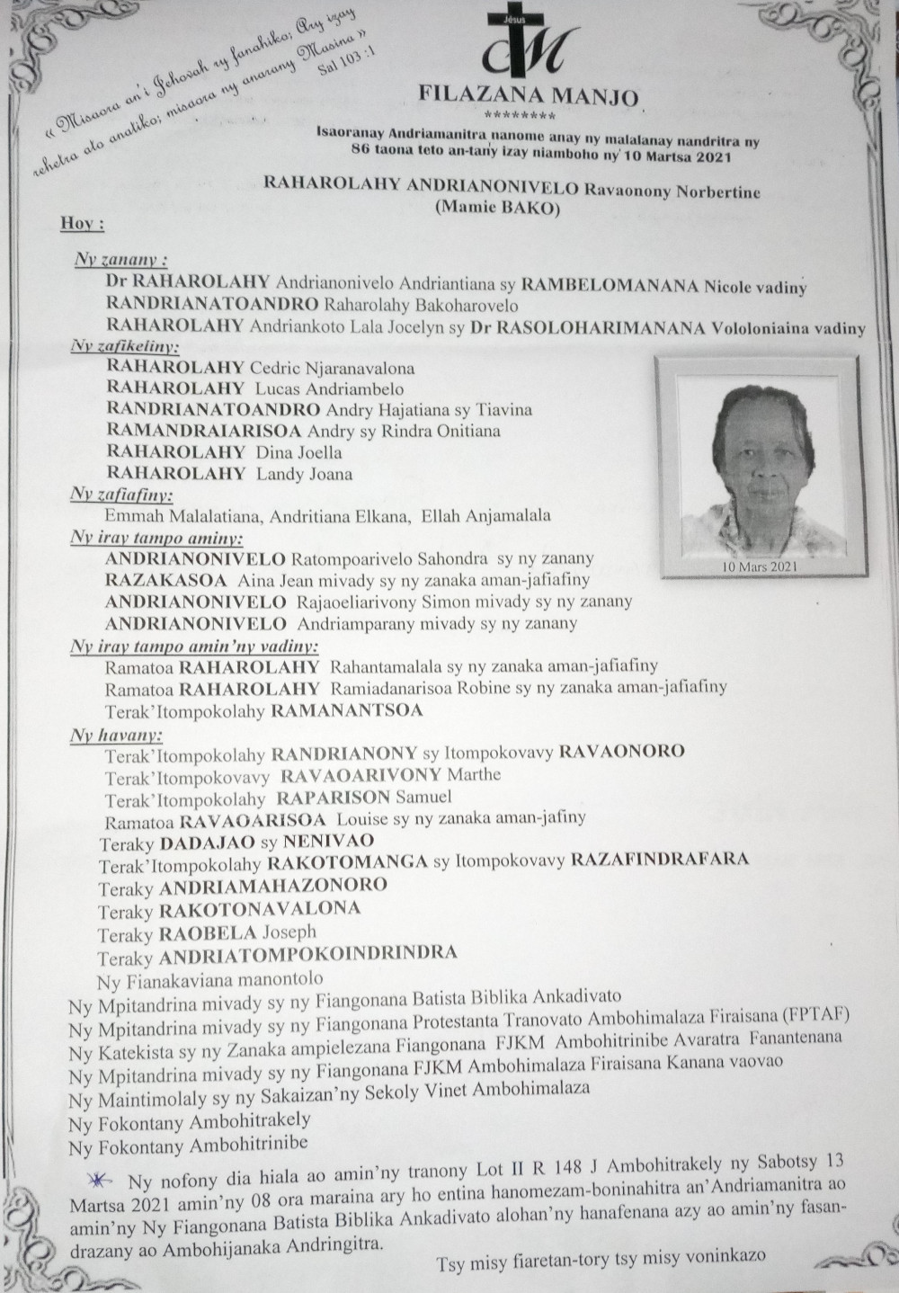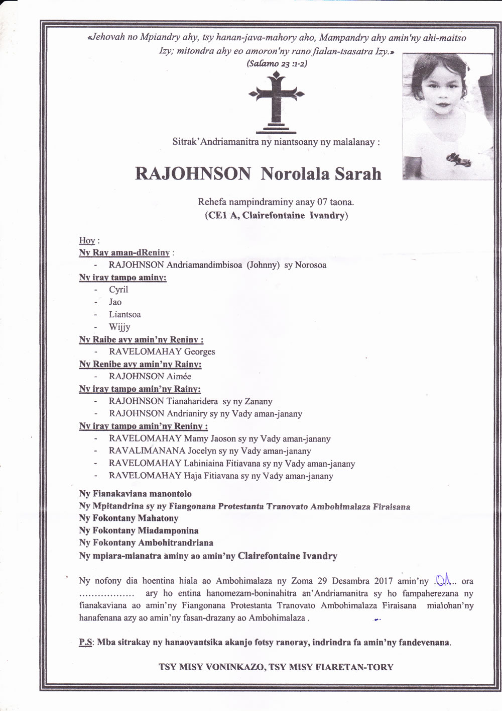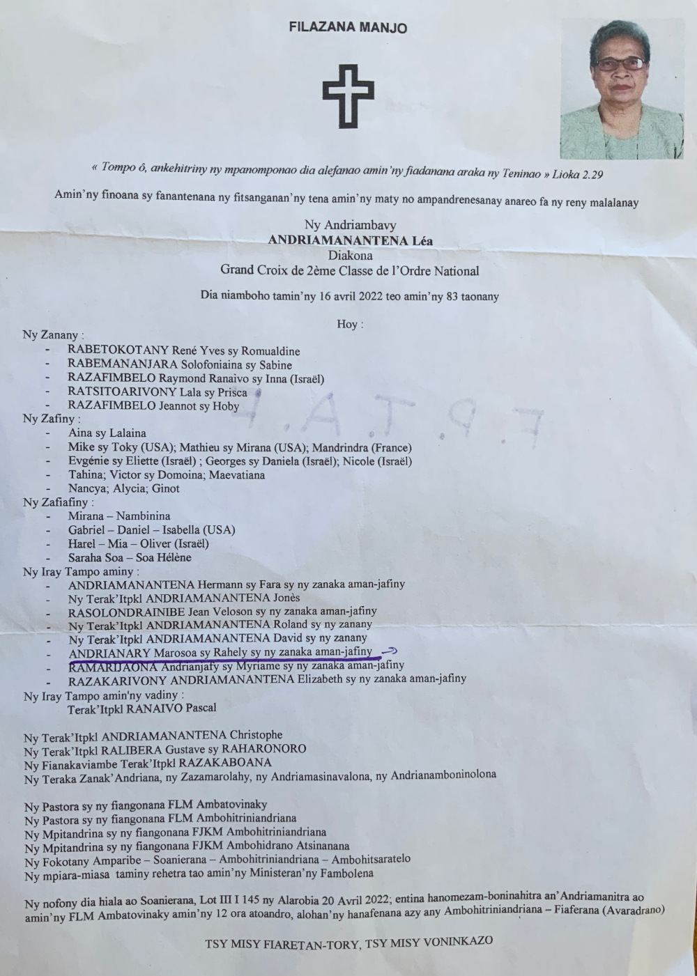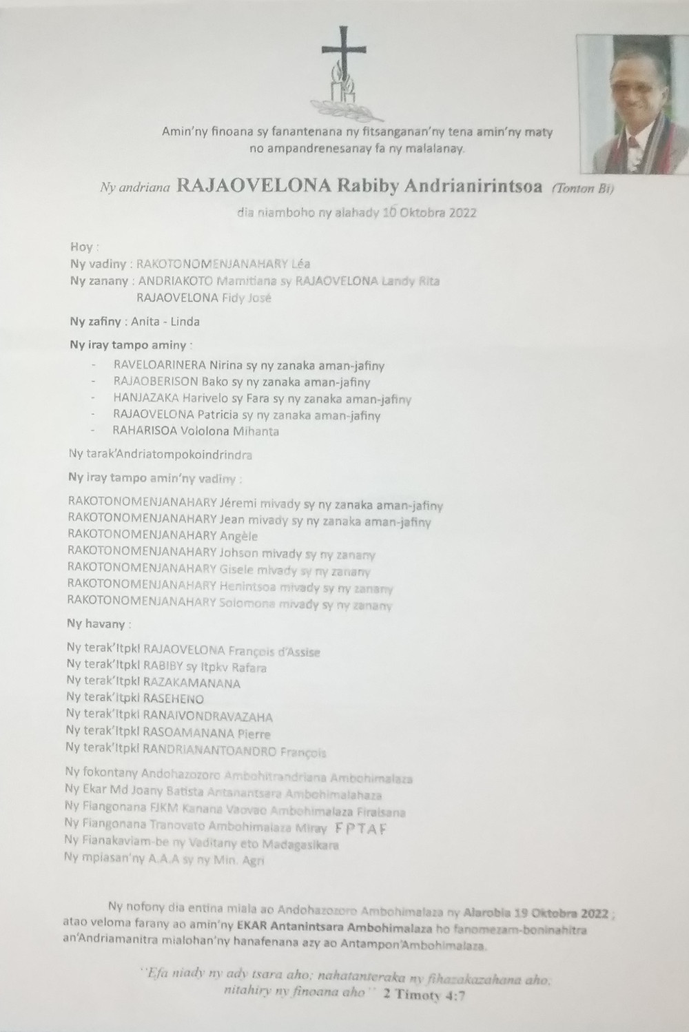 RANAIVO Rachel Solonirina (Loholona) Vady navelan’Itpklahy RABARISOA Michel