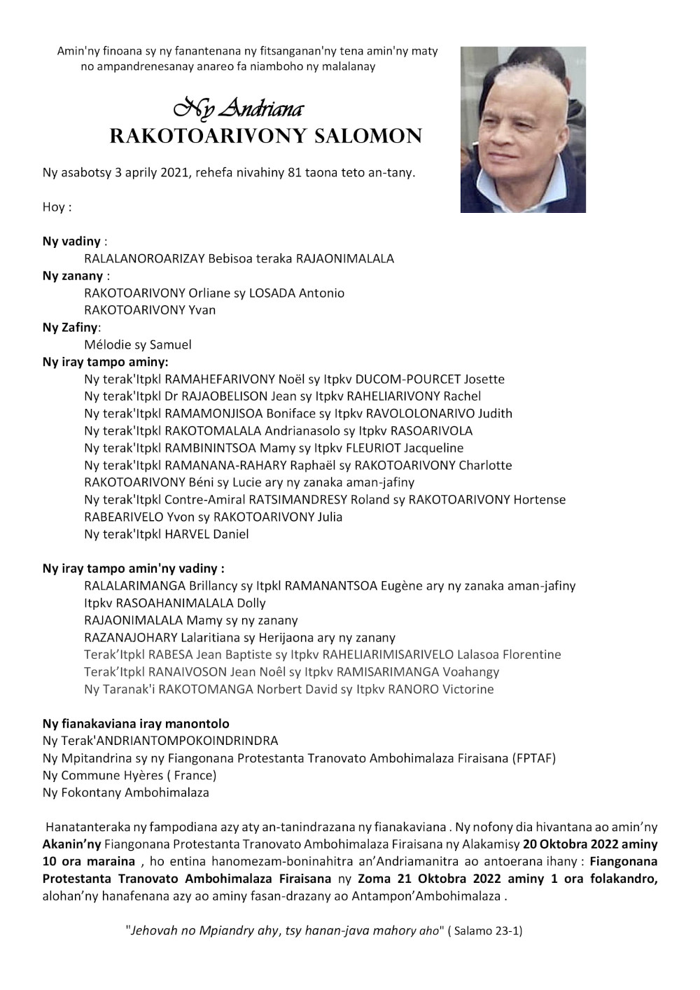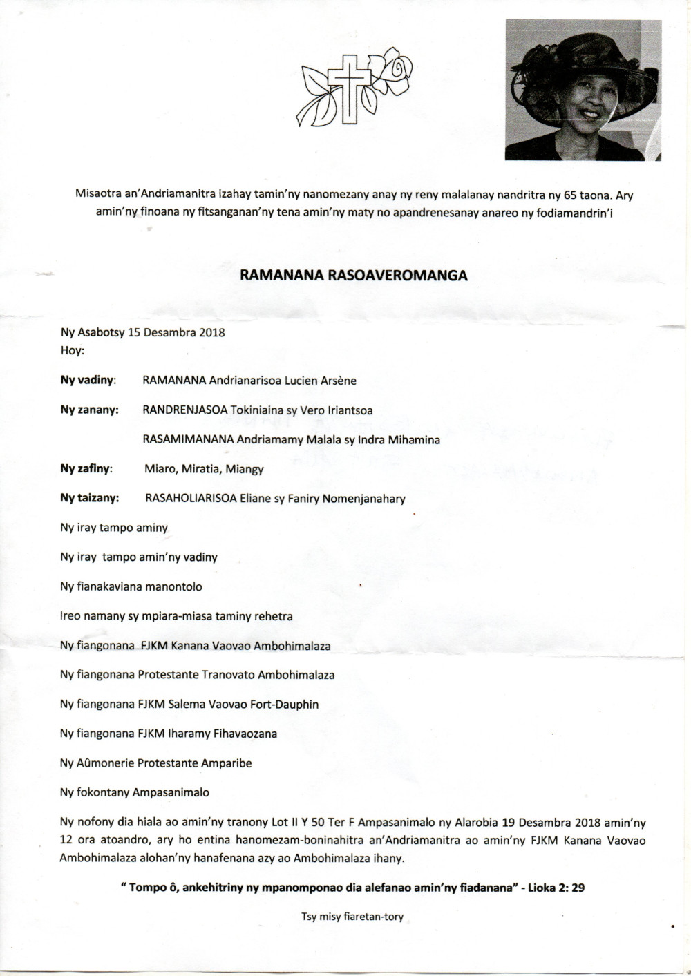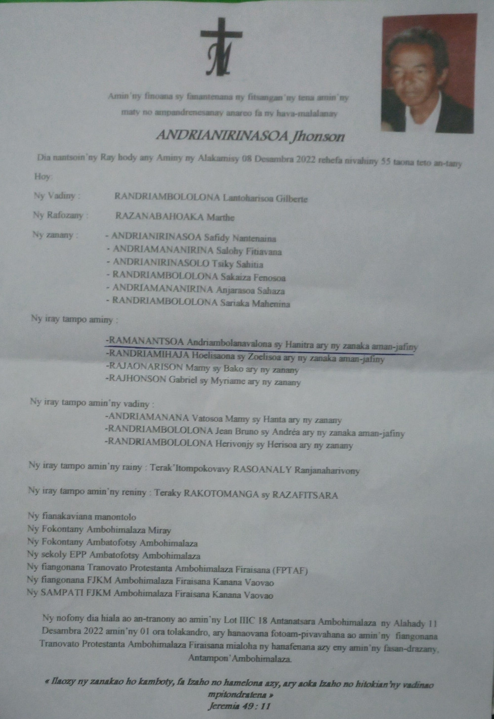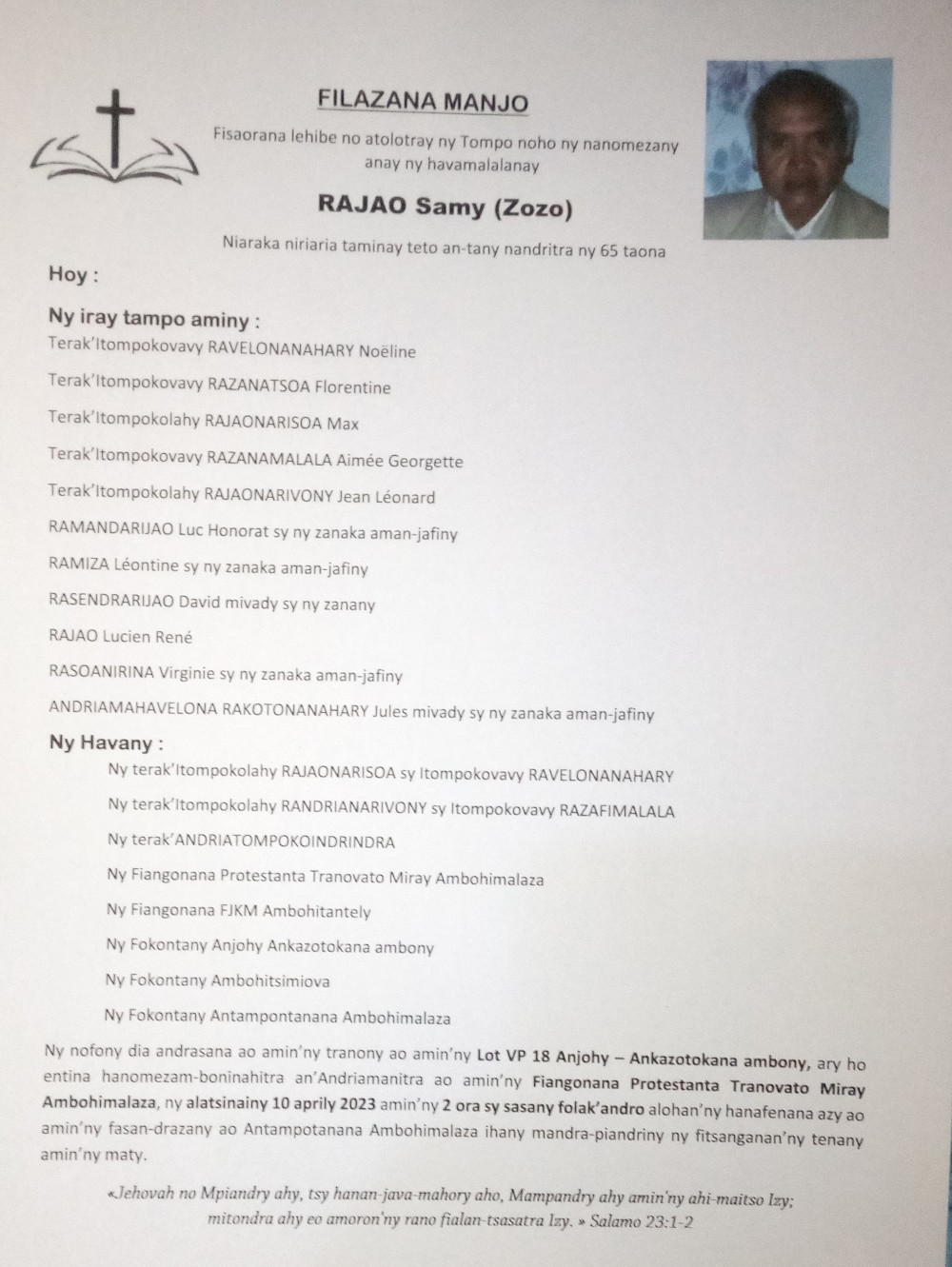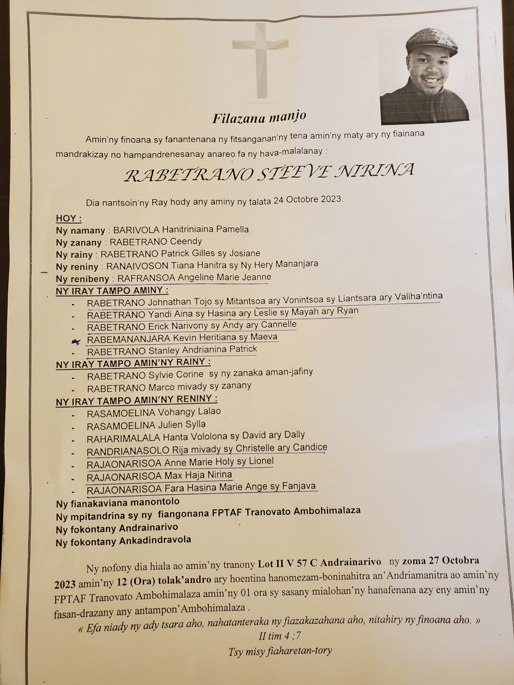 RANAIVO Rachel Solonirina (Loholona) Vady navelan’Itpklahy RABARISOA Michel