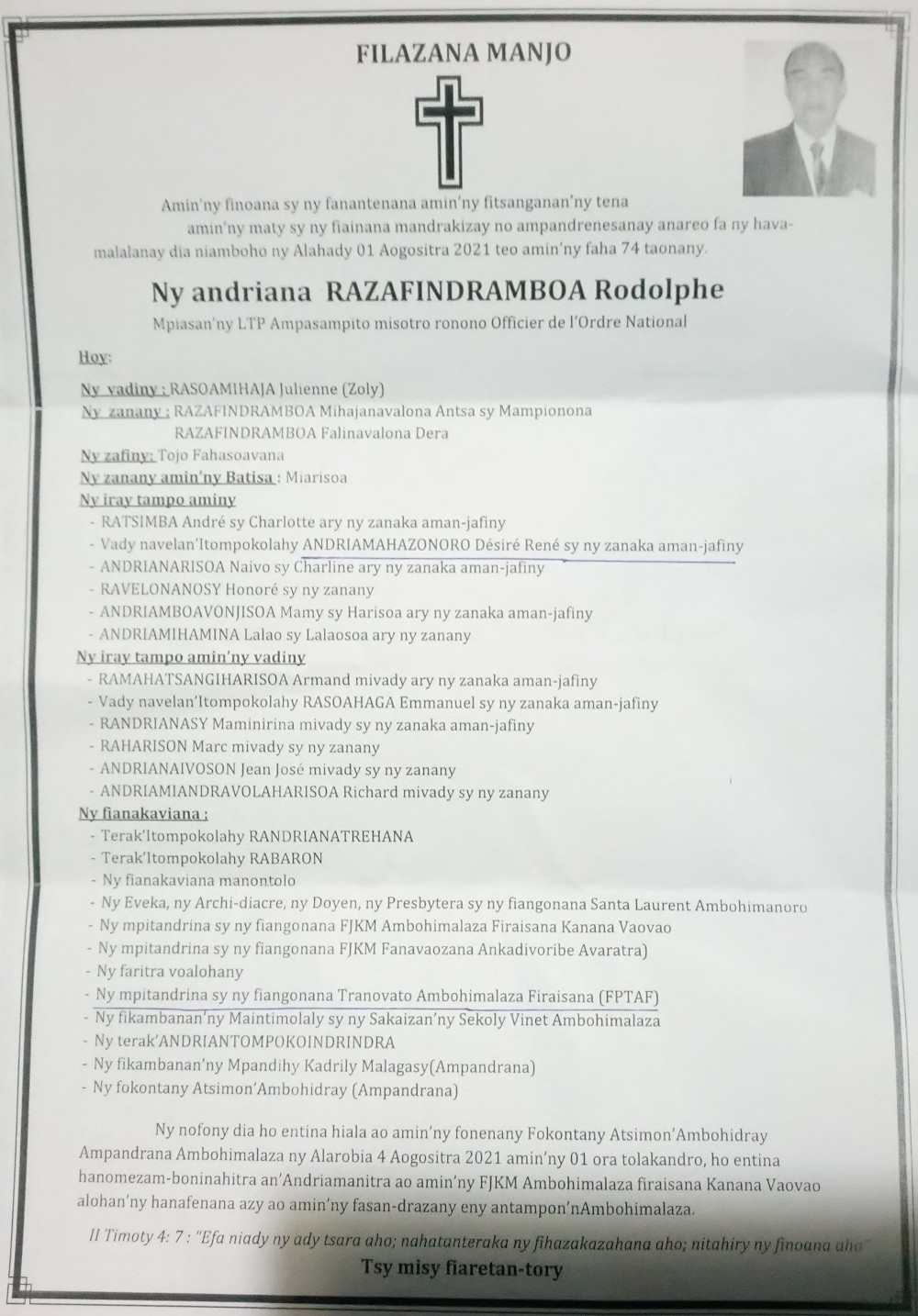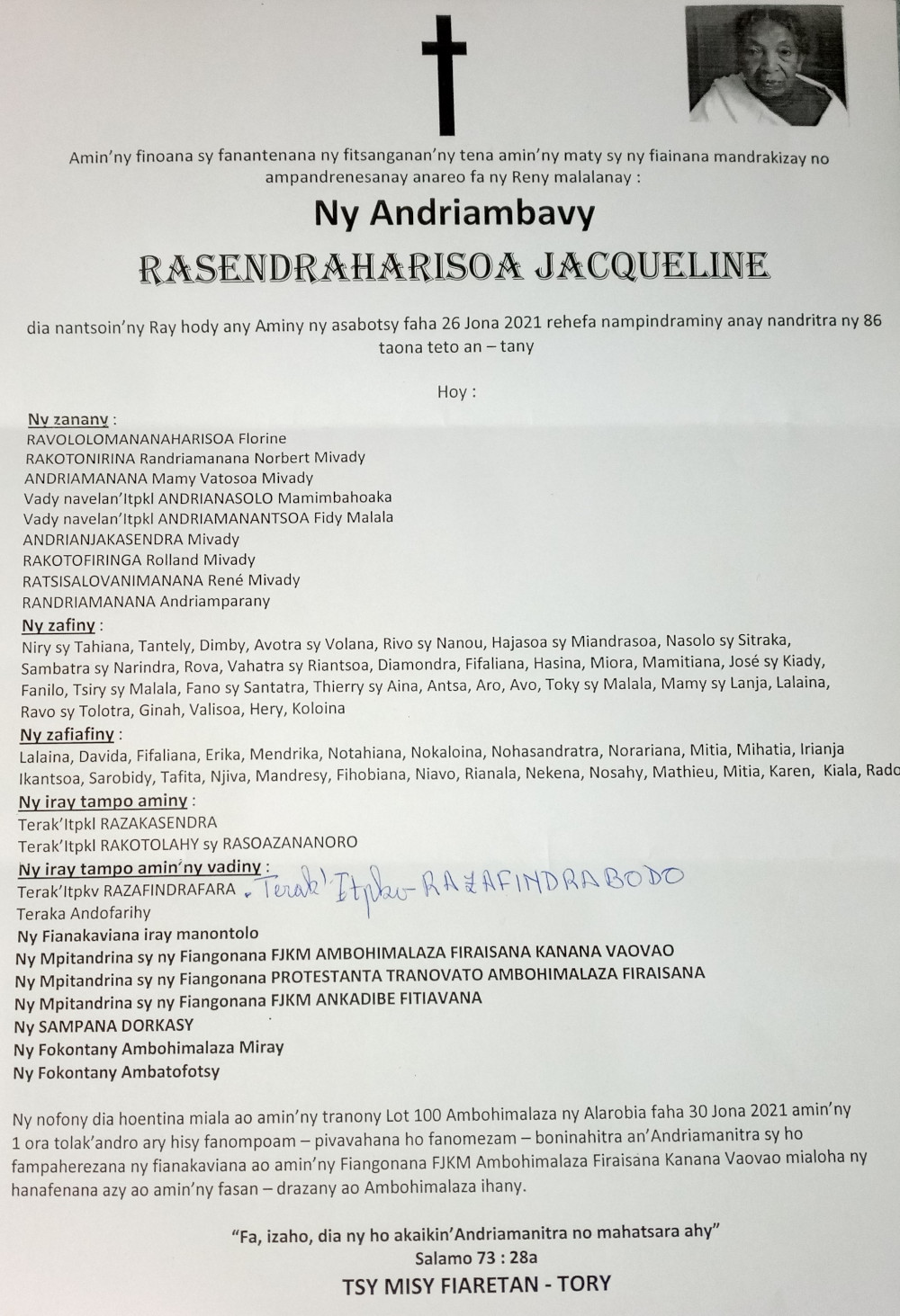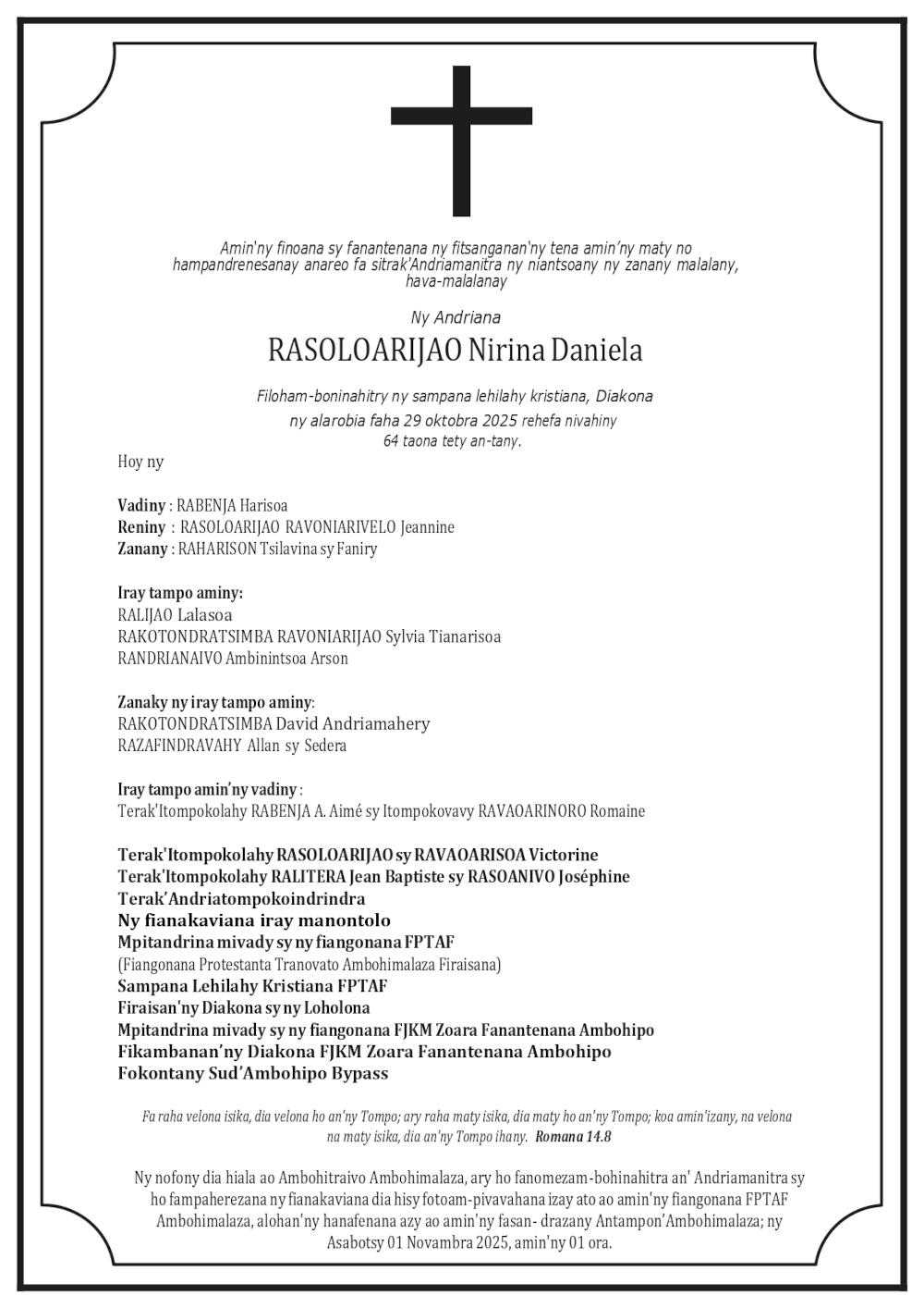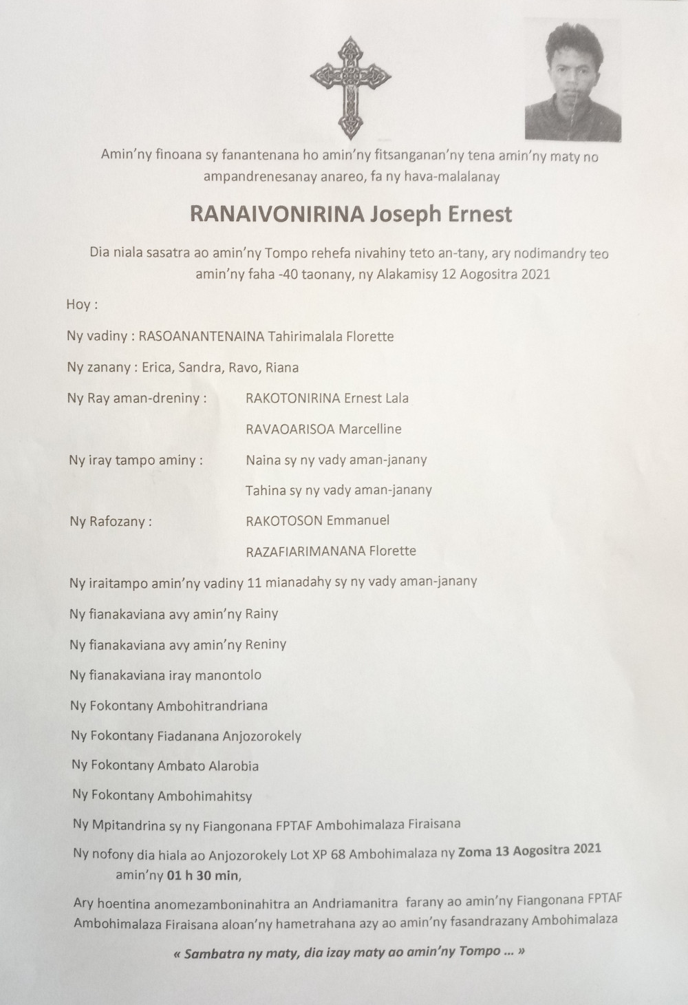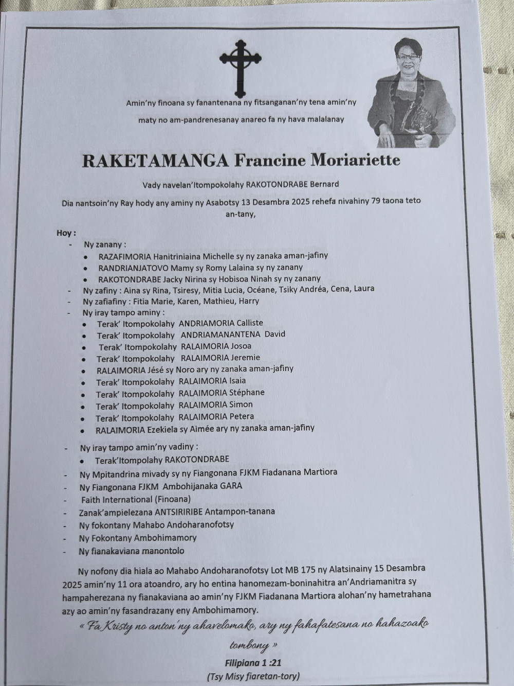 RANAIVO Rachel Solonirina (Loholona) Vady navelan’Itpklahy RABARISOA Michel