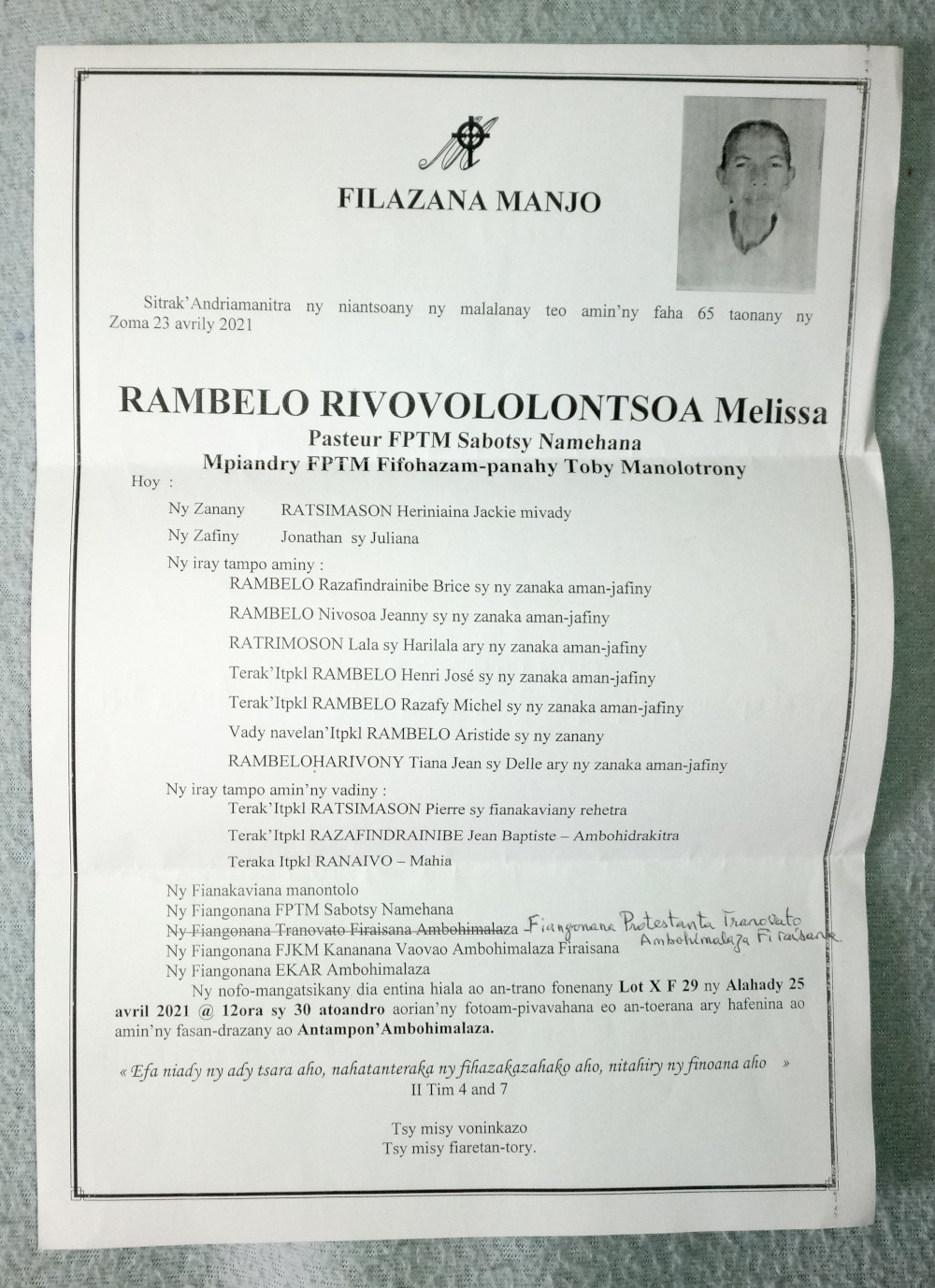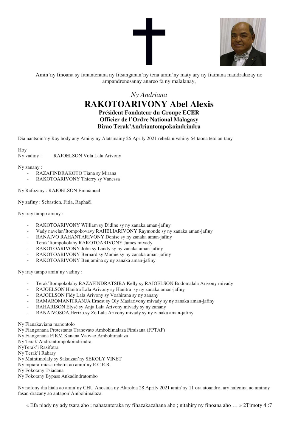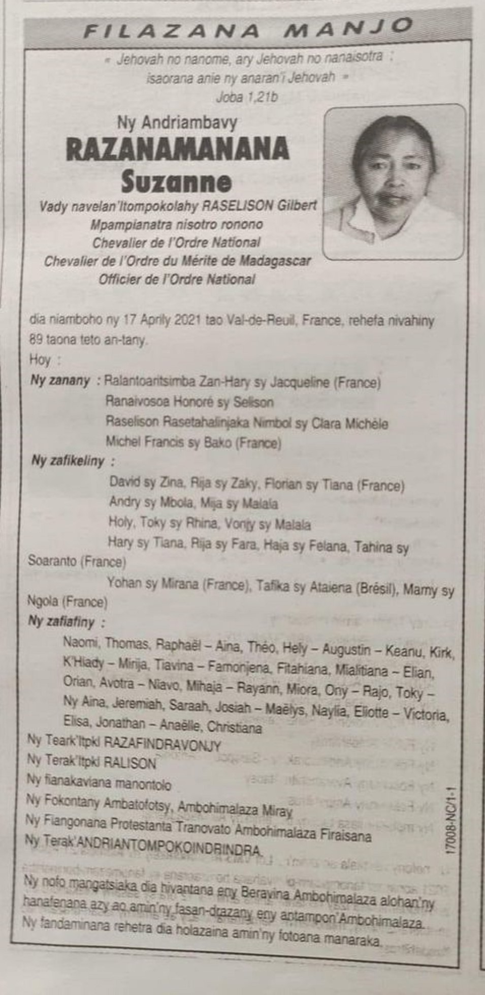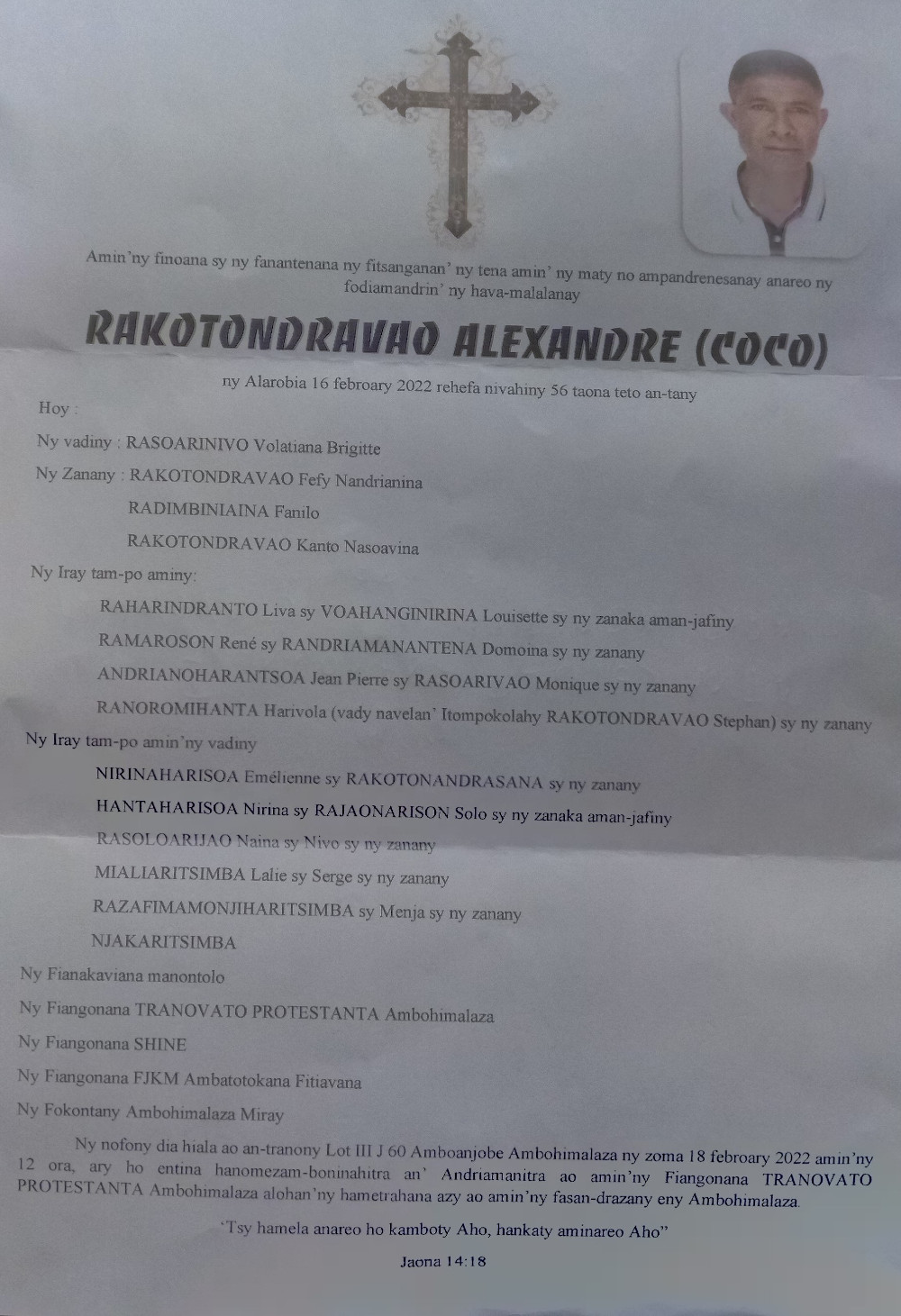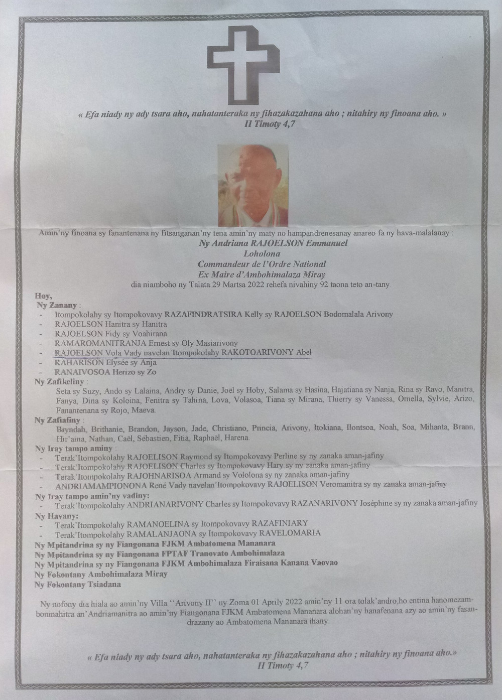RANAIVO Rachel Solonirina (Loholona) Vady navelan’Itpklahy RABARISOA Michel