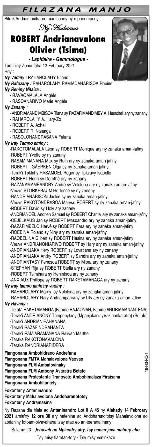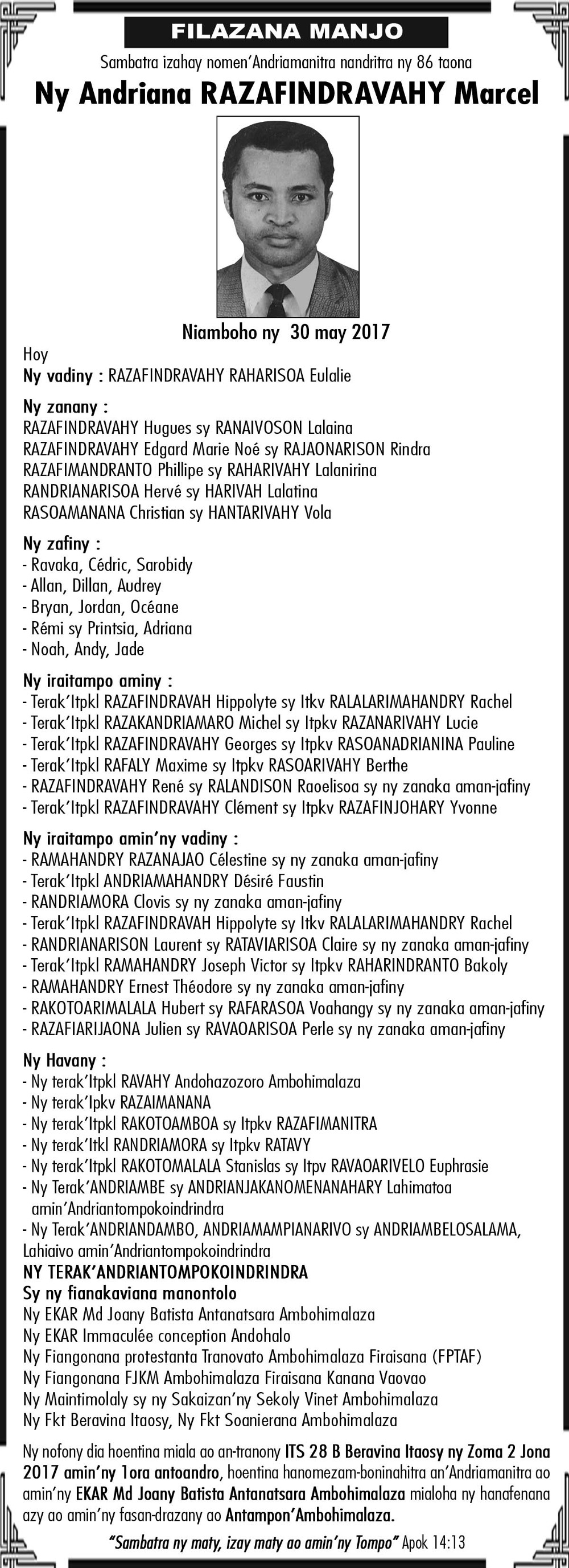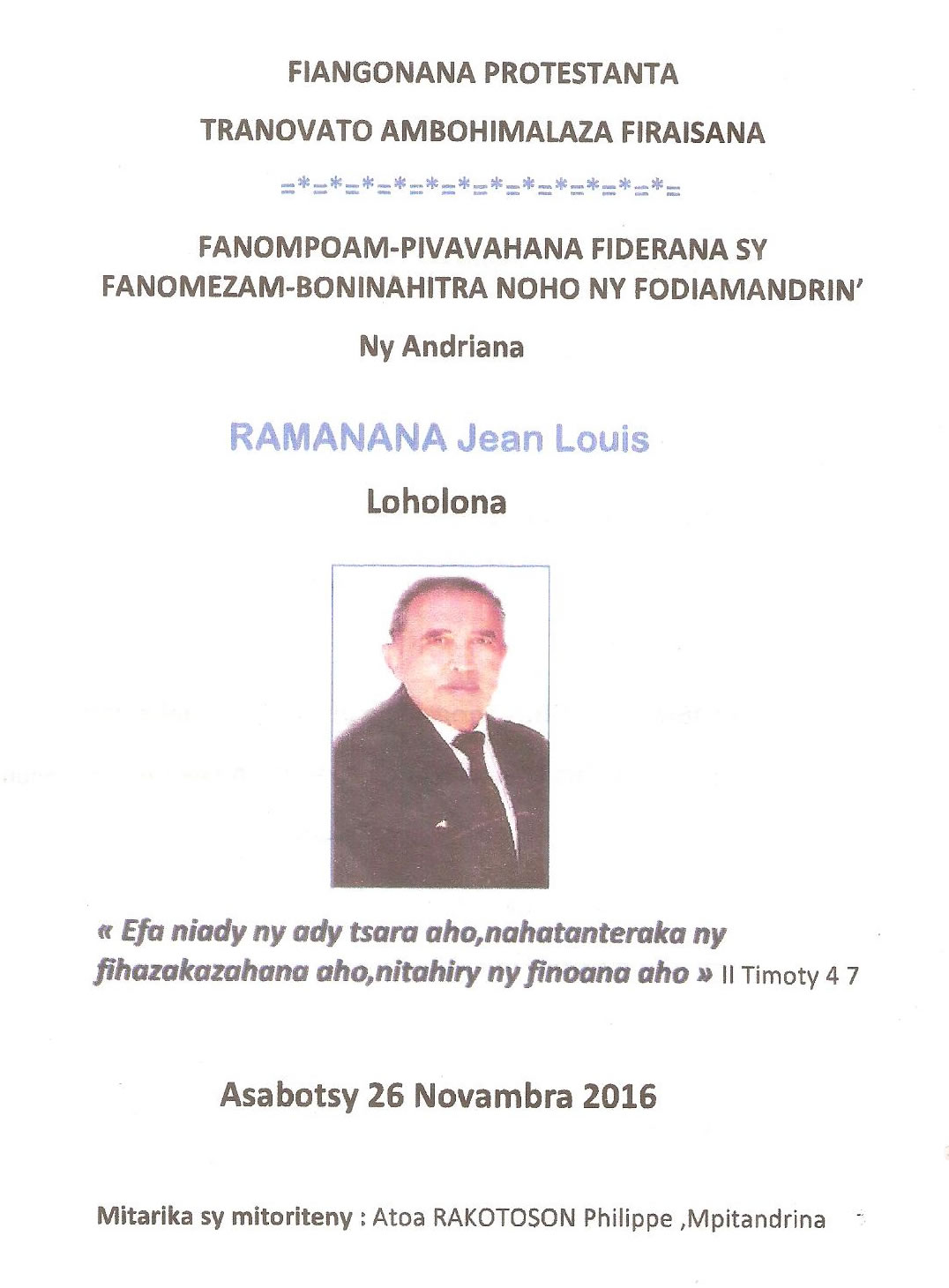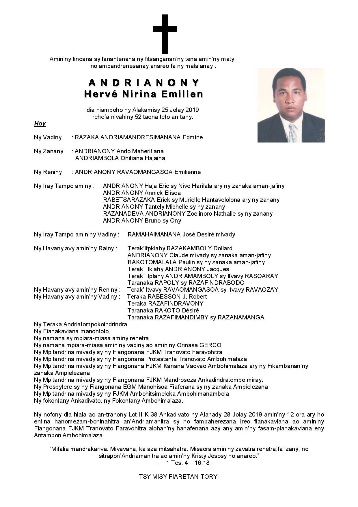 Ny Andriana RAZAFINDRAZAKA Jean Louis Joseph