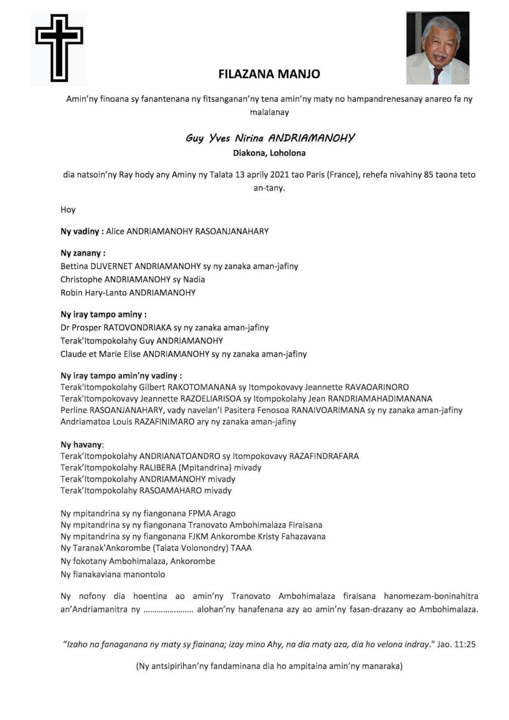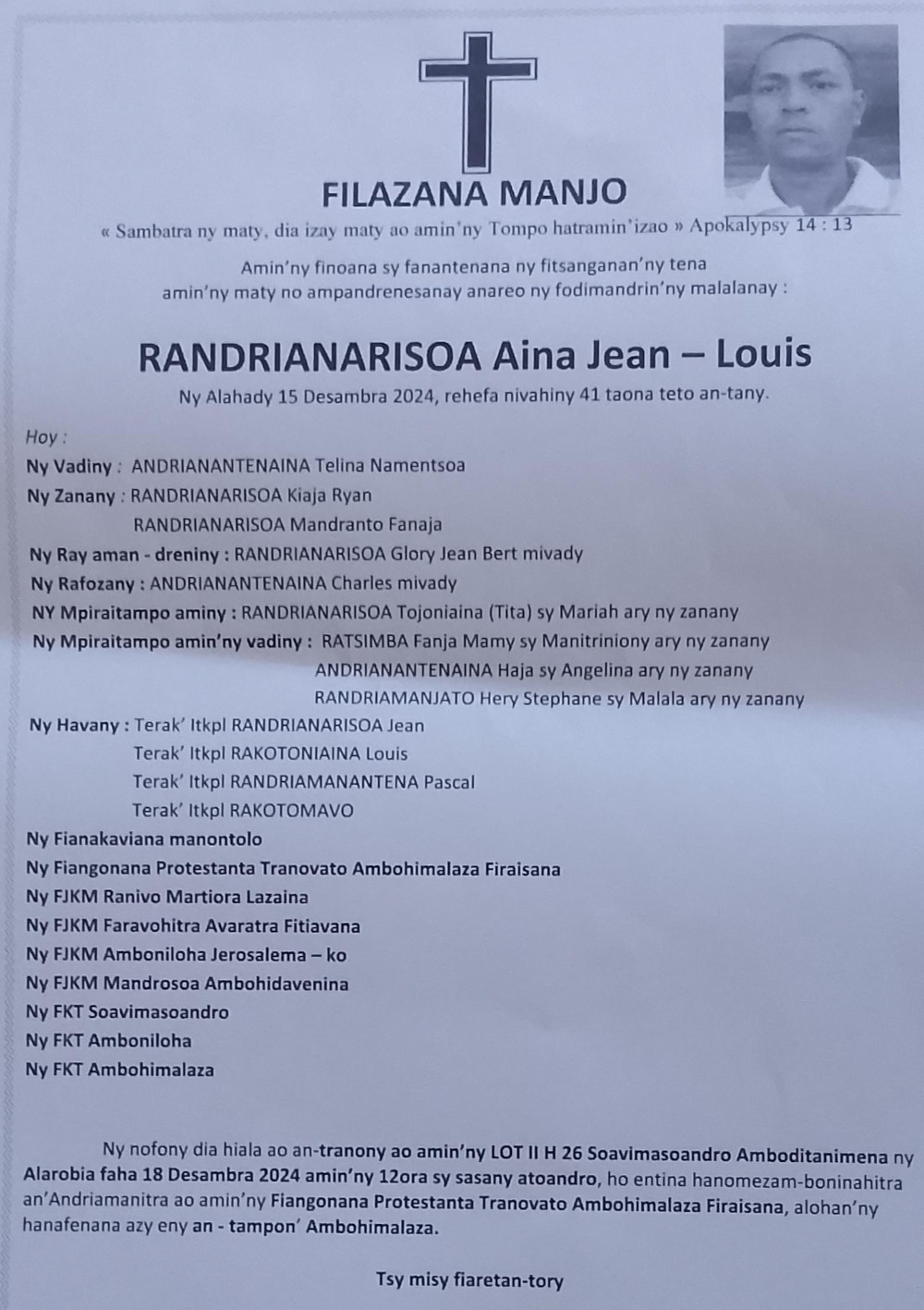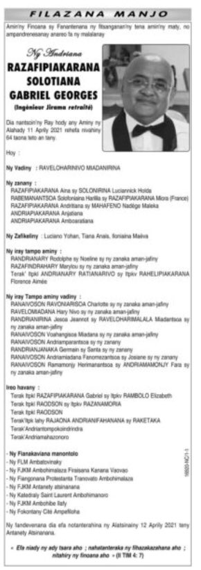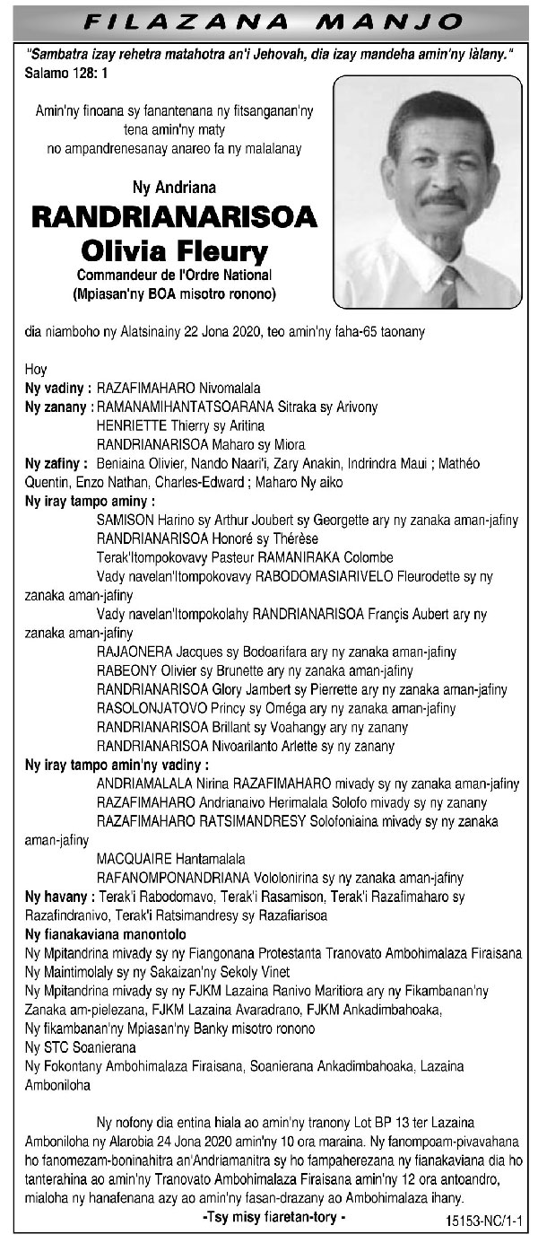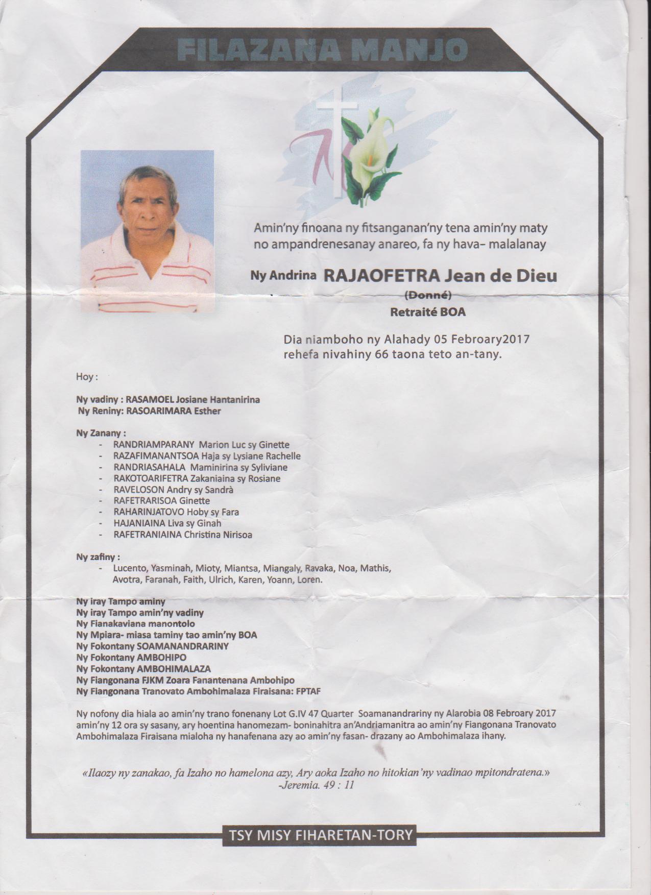 Ny Andriana RAZAFINDRAZAKA Jean Louis Joseph