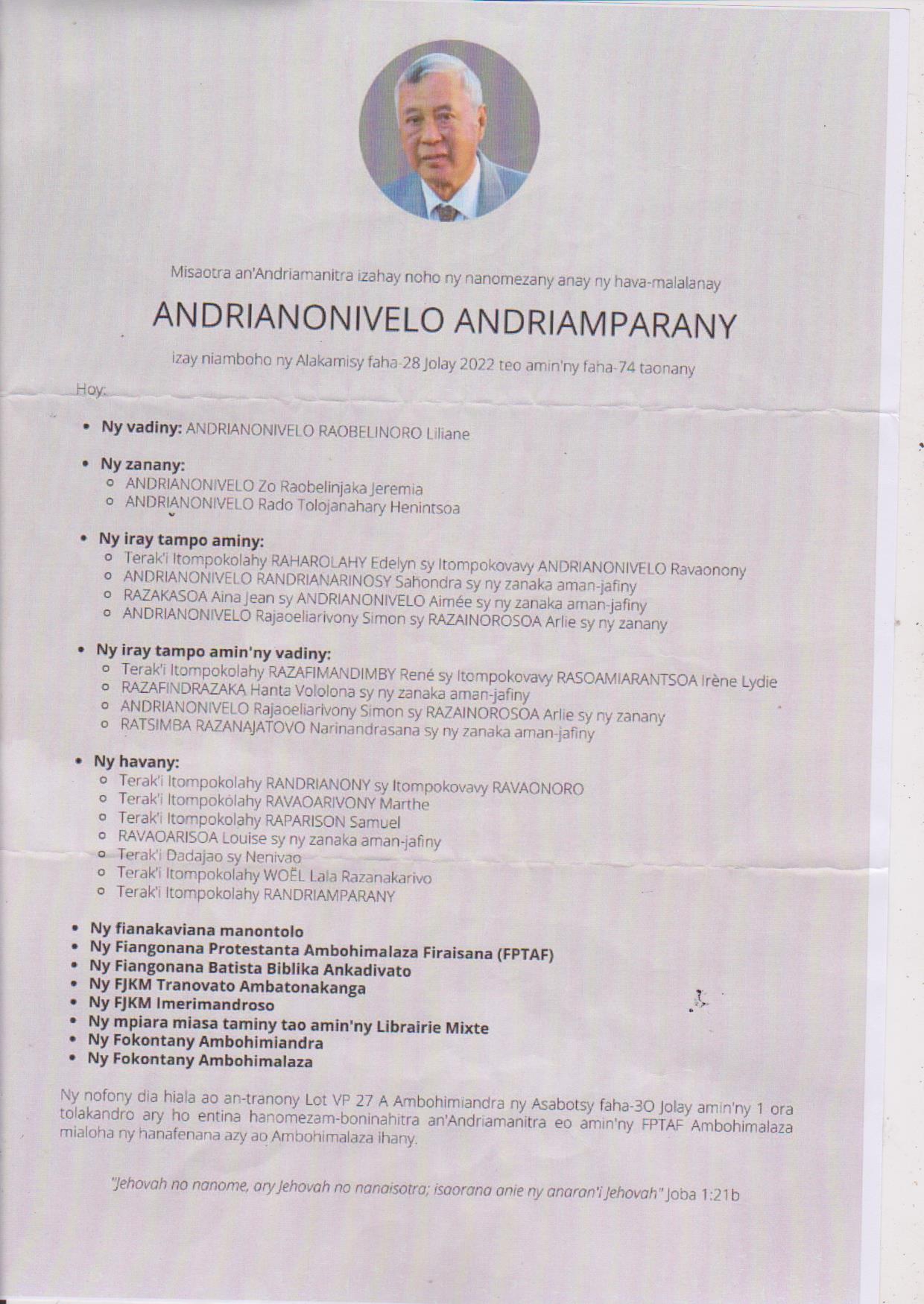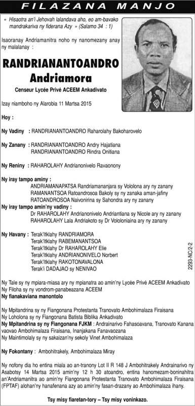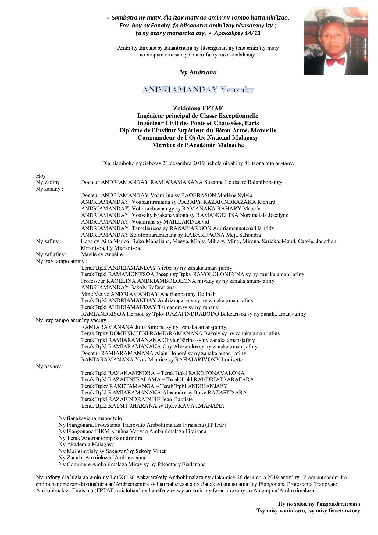 Ny Andriana ANDRIANAVALONA Rakotozafiarizaka