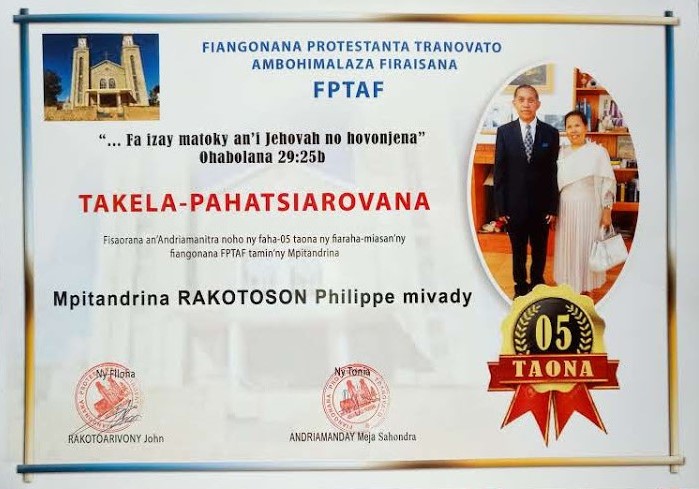 Fankalazana ny faha-5 taona nirahana niasa tamin'ny Mpitandrina RAKOTOSON Philippe