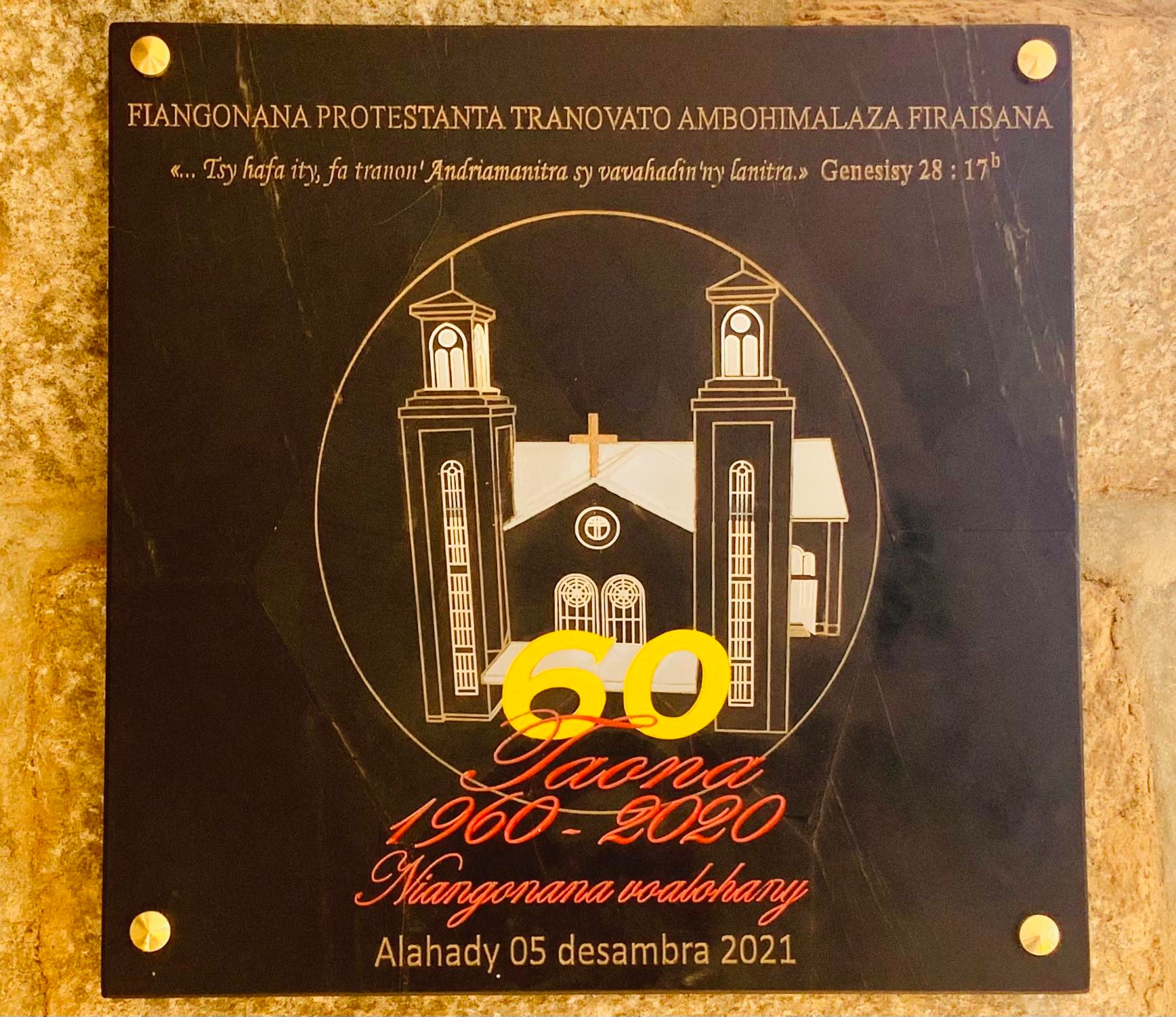 05 Desambra 2021 : Fankalazana ny faha 60 taona niangonana voalohany tato amin'ny Tranovato. Fitokanana ny vavahady sy takela-pahatsiarovana